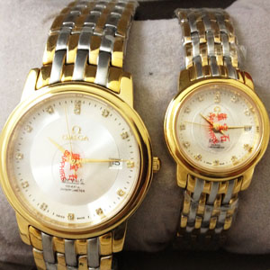歐米茄情侶錶,漸金錶帶,3針日歷,藍寶石鏡面,380壹只的價格,石英機芯