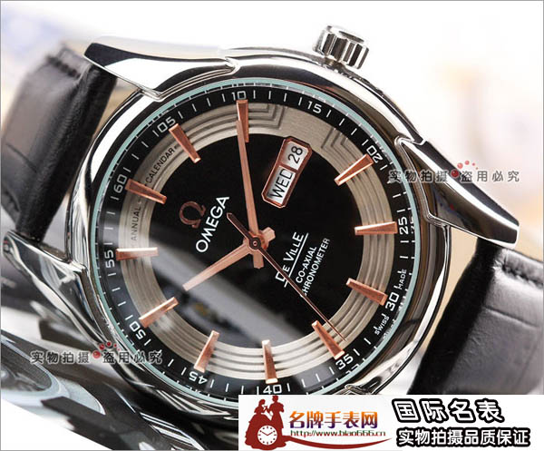 OMEG歐米茄全自動機械手錶黑色真皮錶帶