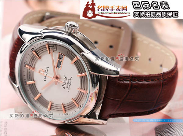 OMEG歐米茄全自動機械手錶棕色真皮錶帶