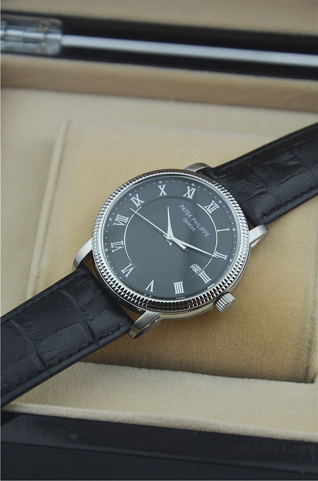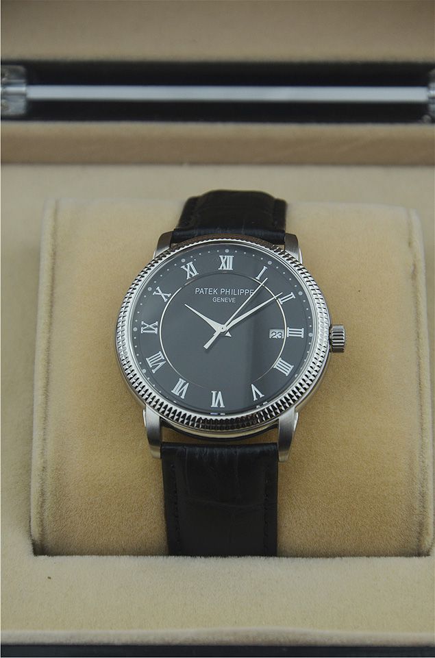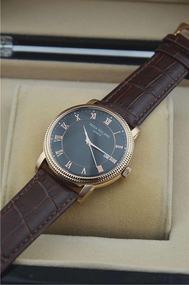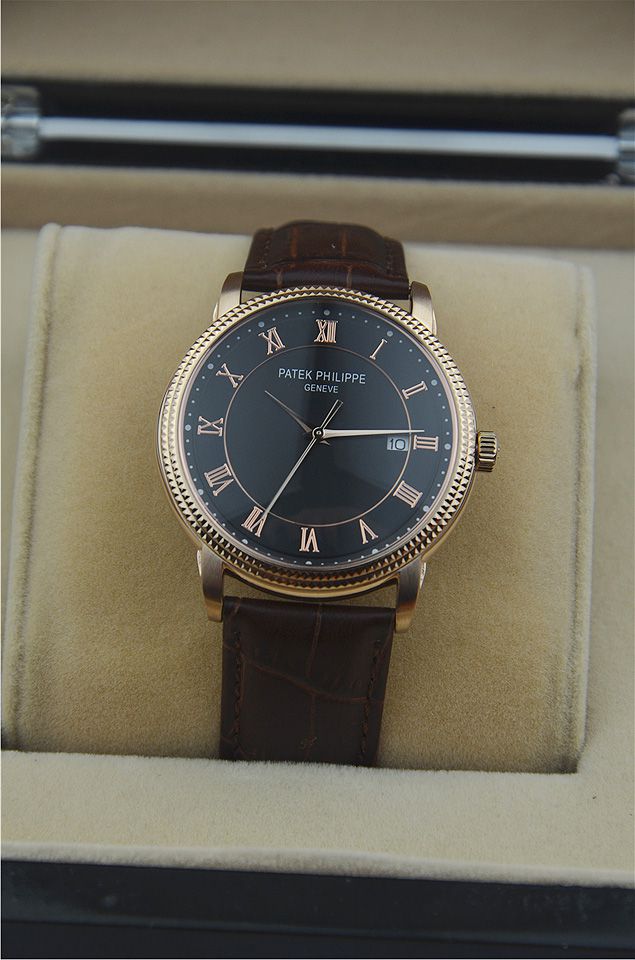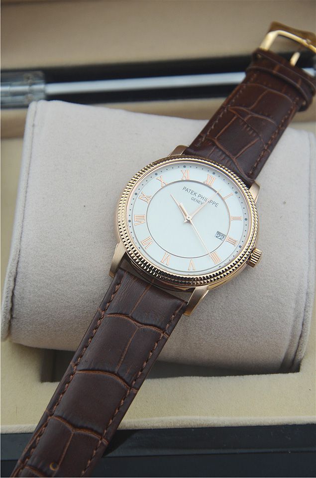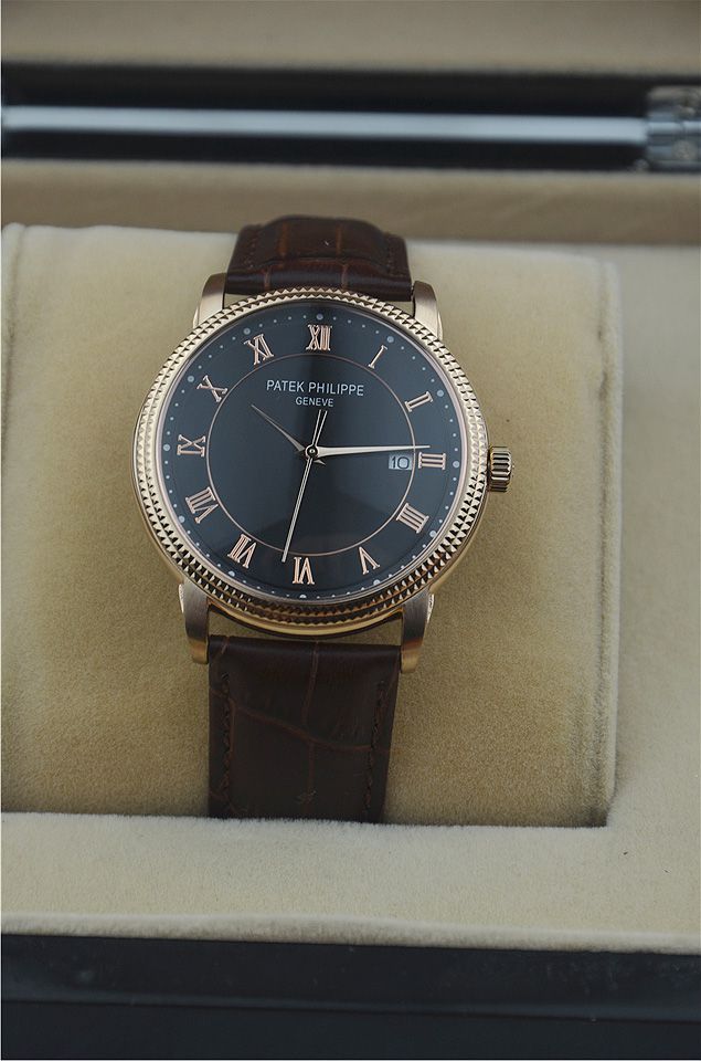 百達翡麗單日曆時尚羅馬刻度男士腕錶進口瑞士石英機芯 有三款(黑盤 玫瑰金 白盤)