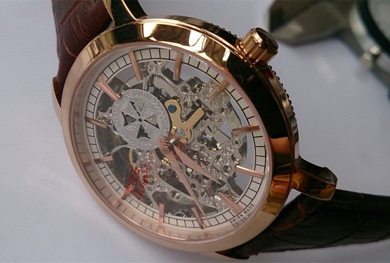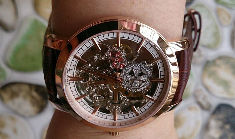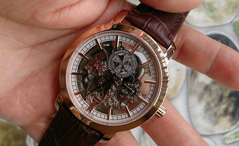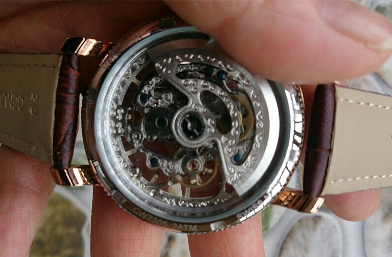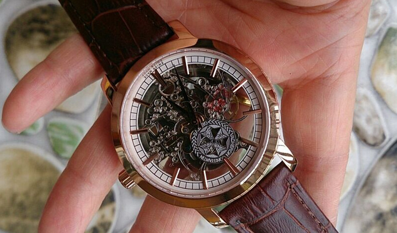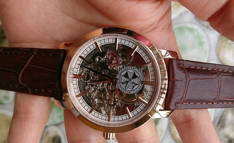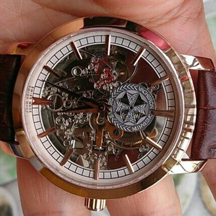 百達翡麗玫瑰金棕色錶帶經典鏤空進口機械男士腕錶