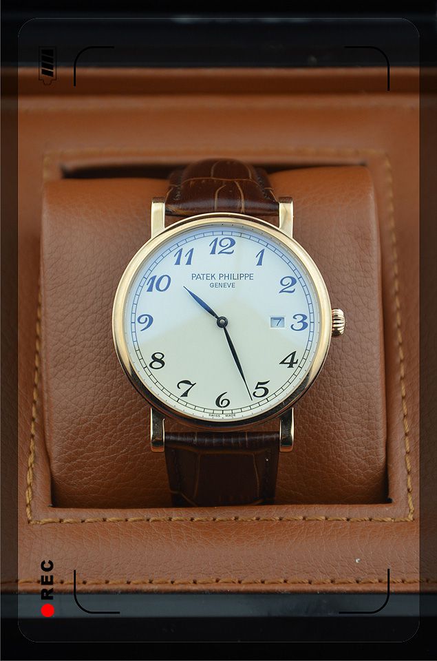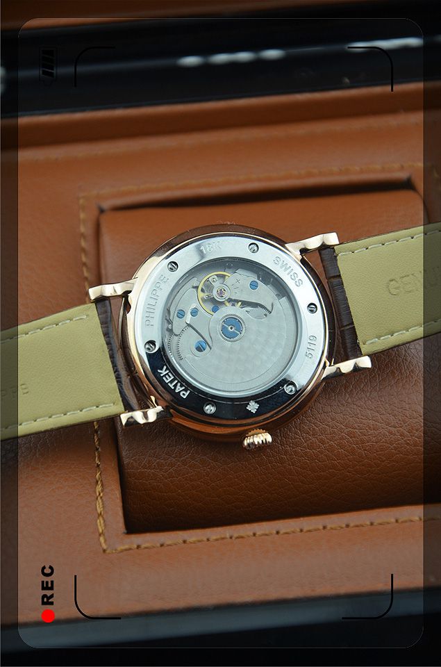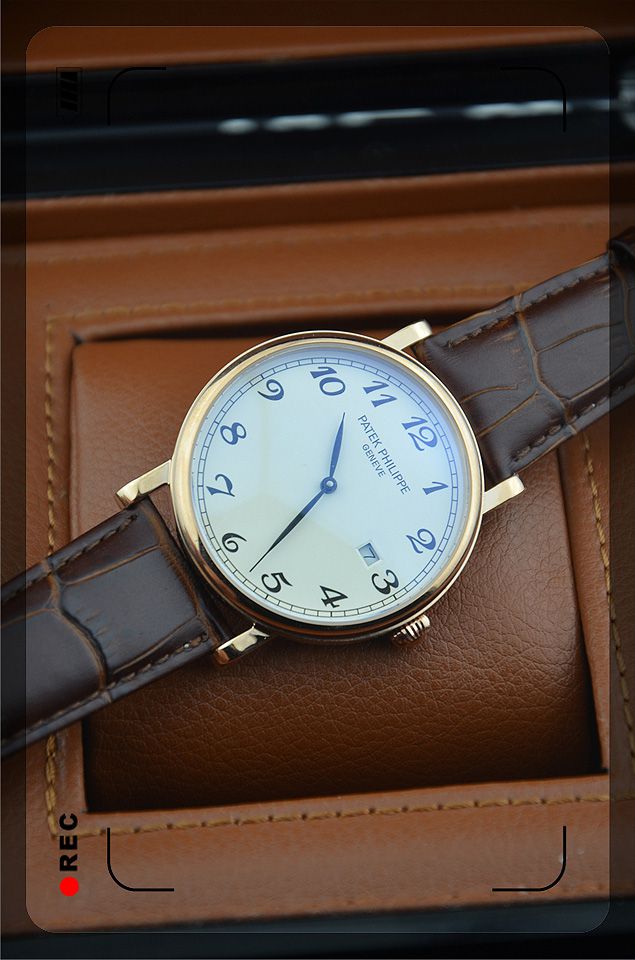 百達翡麗新款單日曆數字刻度日本進口機芯全自動機械機芯男士腕錶 簡單時尚