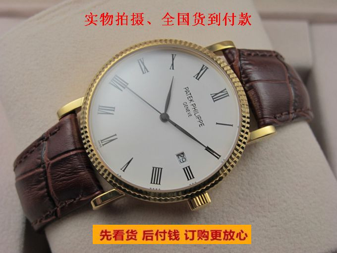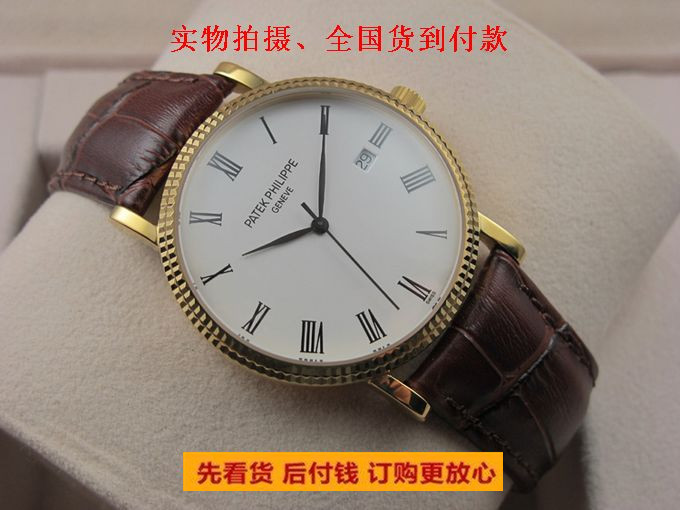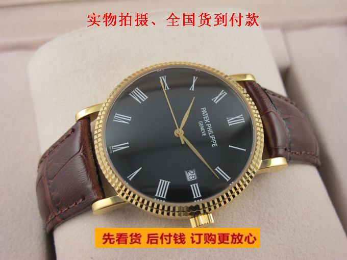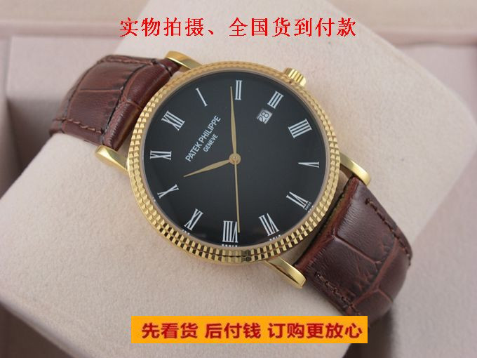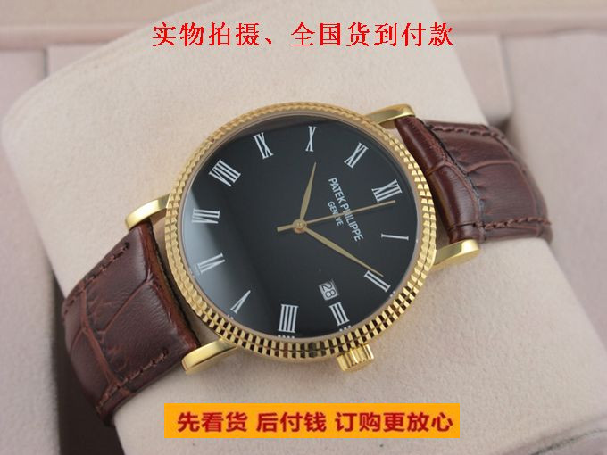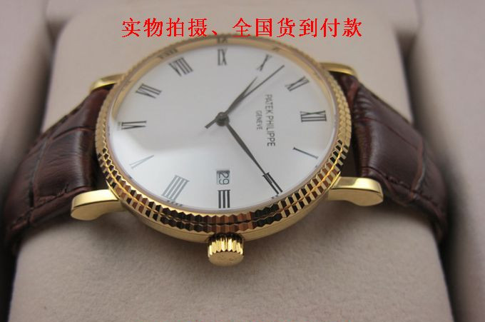 精仿百達翡麗 Calatrava系列自動機械男士手錶18K金羅馬刻度真皮錶帶 有白盤黑盤