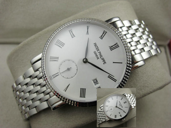 PATEK PHILIPPE百達翡麗牙輪錶殼ETA2824男士全自動機械錶日曆腕錶 銀邊白面
