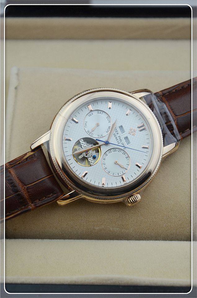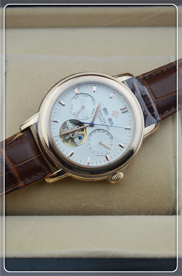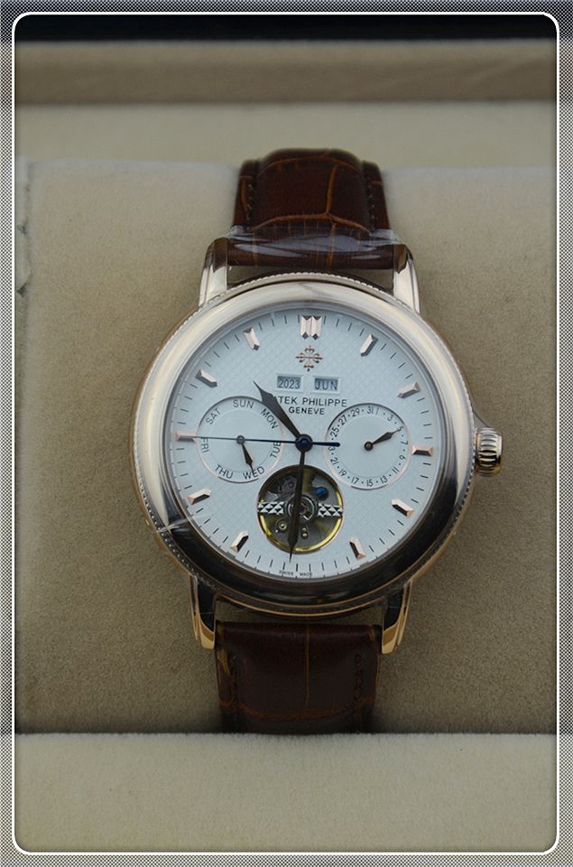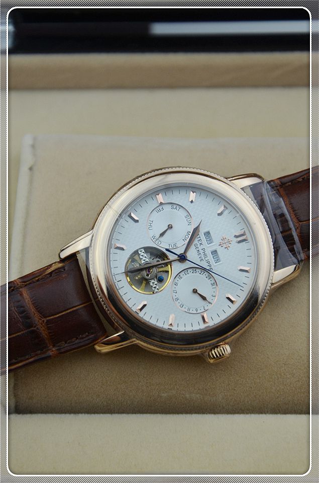 PP: 百達翡麗機芯:男士機械腕錶尺寸:寬42.5厚14.5重70克錶帶:皮帶