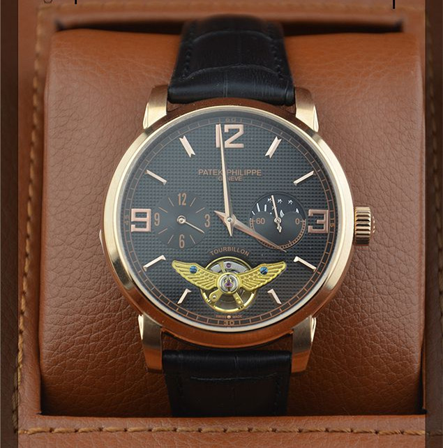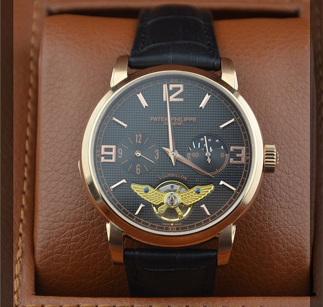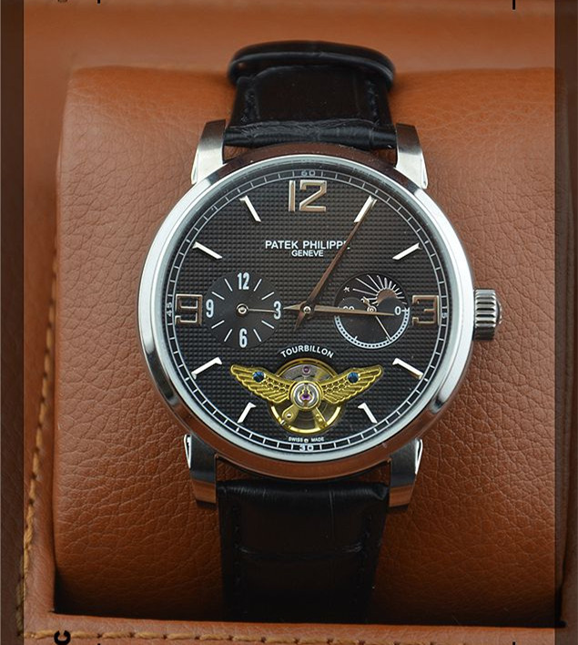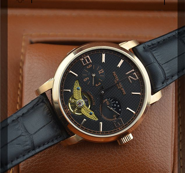 時尚新款百達翡麗陀飛輪日月星辰男士機械腕錶 玫瑰金銀白殼兩款錶殼