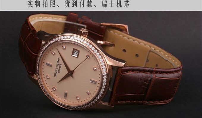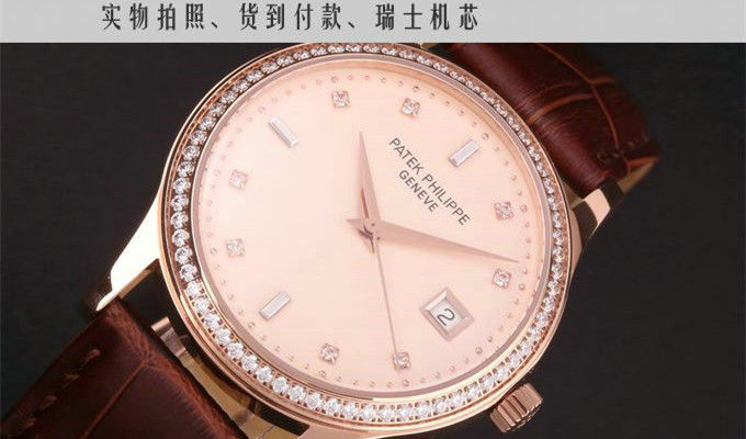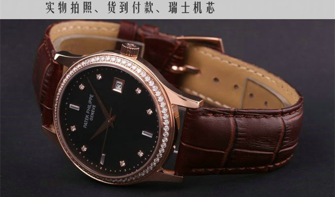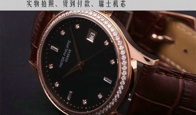 百達翡麗 18K玫瑰金金面自動機械男錶 瑞士機芯 有黑盤