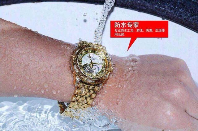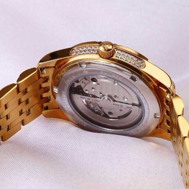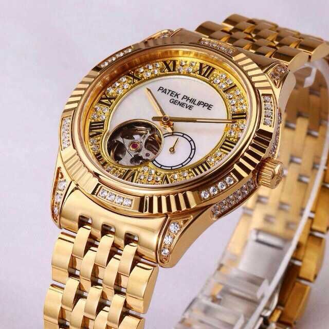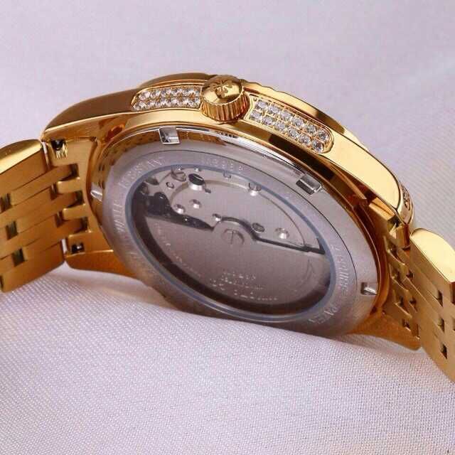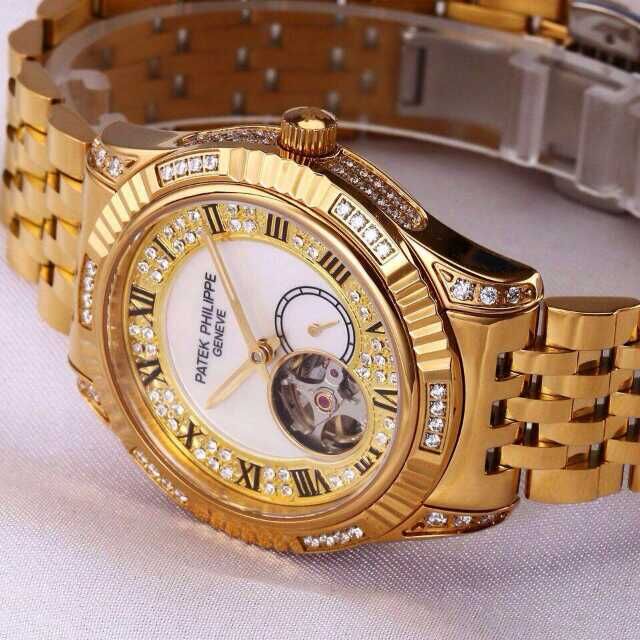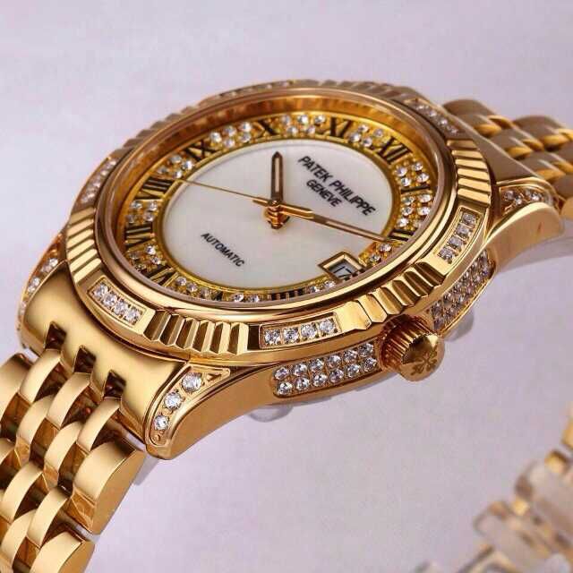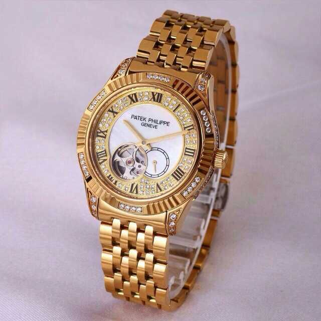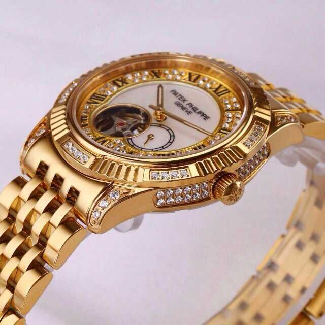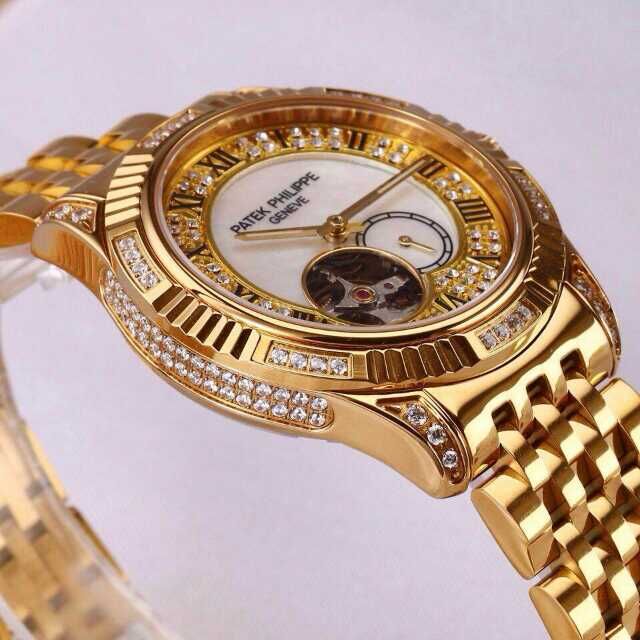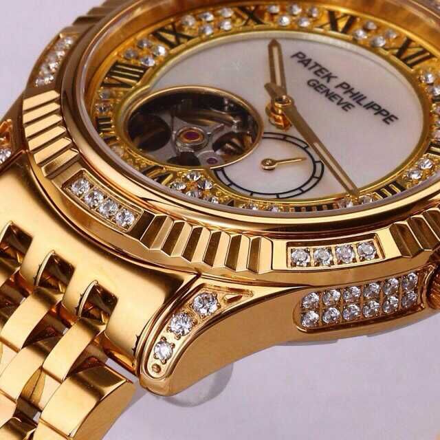 百達翡麗土豪金鑲鉆機械男士腕錶 進口瑞機