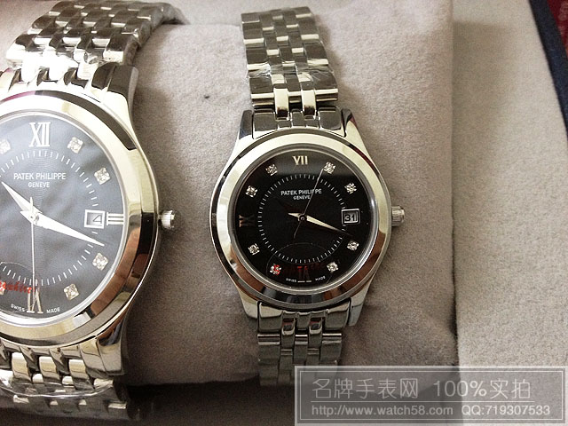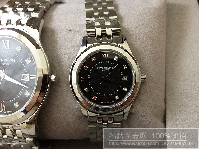百達翡麗情侶手錶,石英機芯,藍寶石鏡面,純鋼錶帶,3針日歷,鉆石刻度