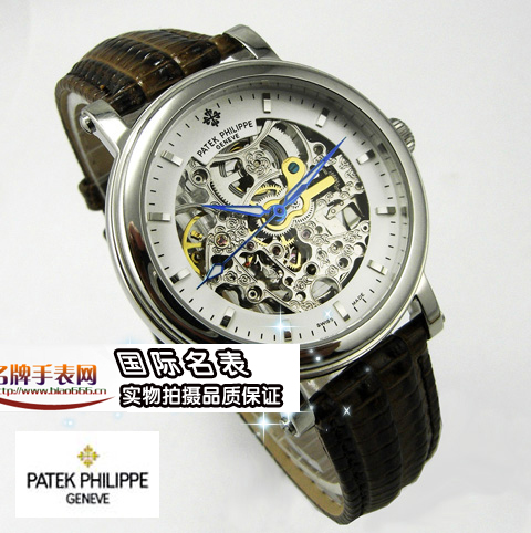 時尚男錶 百達翡麗 壓花皮帶全透鏤空透視自動機械錶/3針透白男