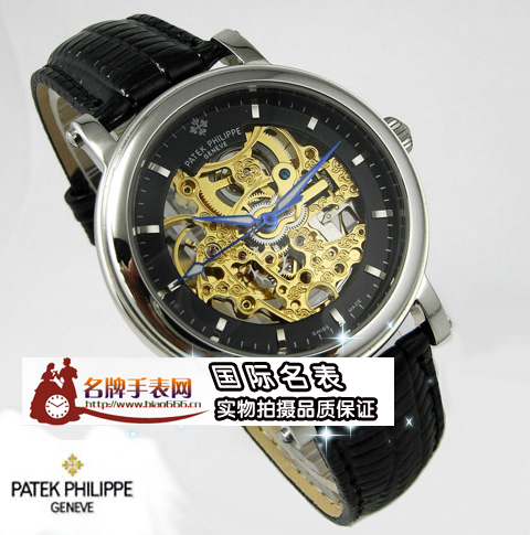 百達翡麗 壓花皮帶全透鏤空透視自動機械錶
