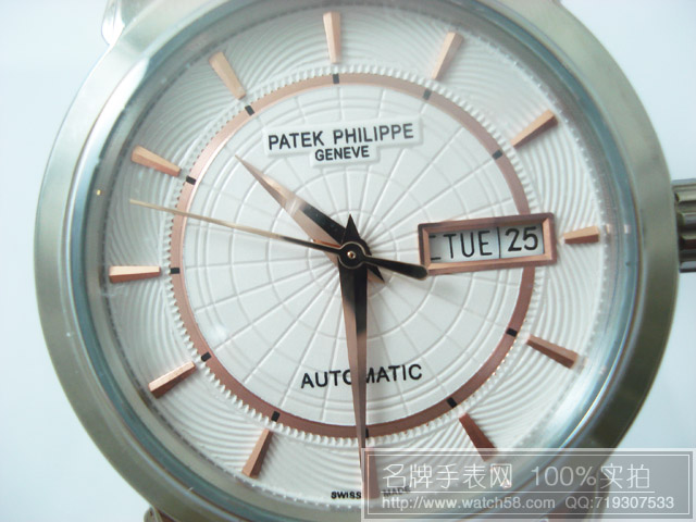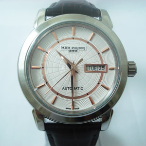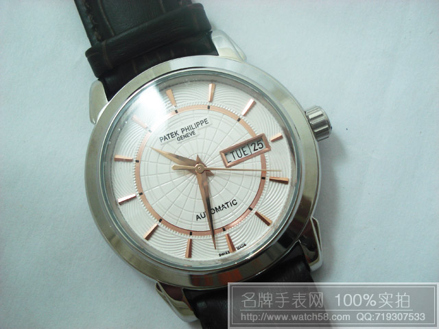 p.p百達翡麗 雙日曆 銀白殼 背透 全自動機械男錶