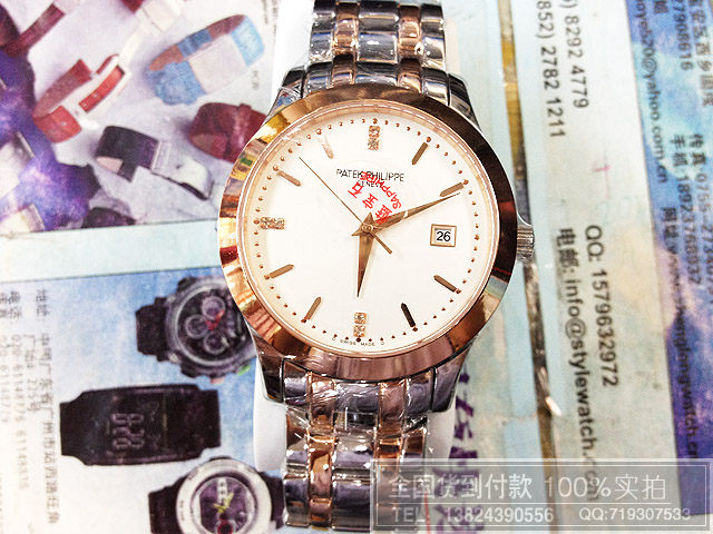 品牌:pp 款式:男款 型號:Q7560 厚度:約10mm 尺寸:錶殼40mm 錶盤: 錶帶:全精鋼錶帶 錶殼:全精鋼錶殼 防水:生活防水 機芯:進口自動機芯 配件:包裝盒,說明書,質保卡,吊牌,香港發票 鏡面:藍寶石水晶玻璃