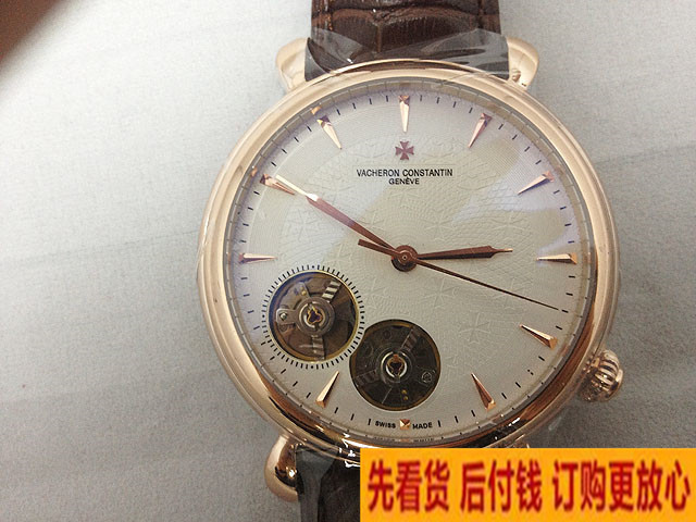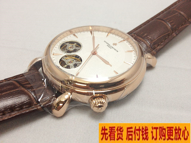 vacheron-constantin3針玫瑰金白色經典雙陀飛輪男士手錶