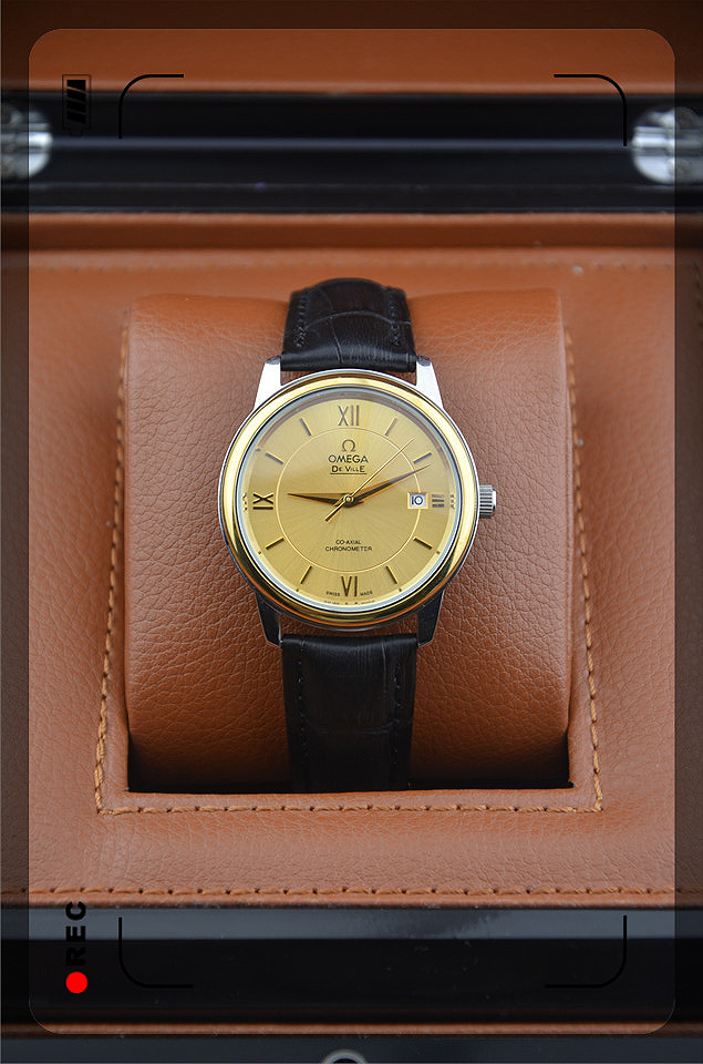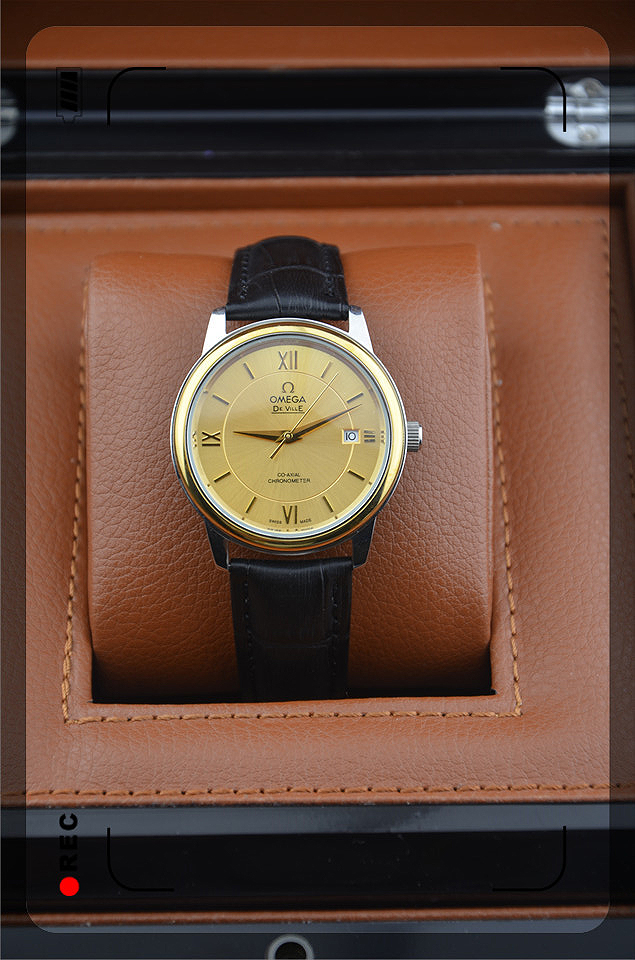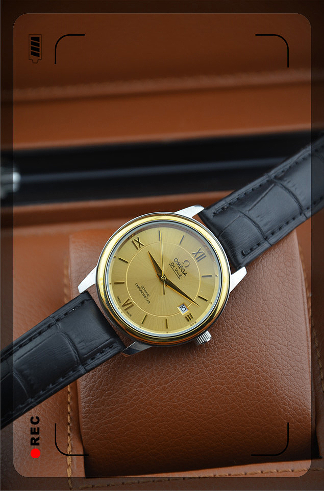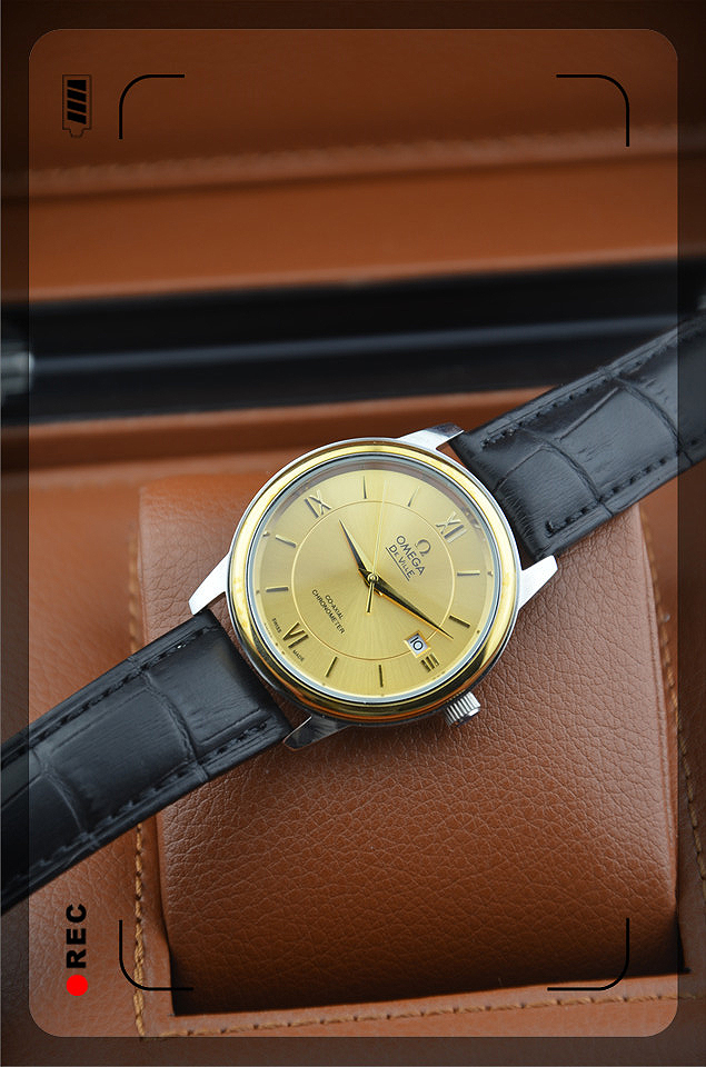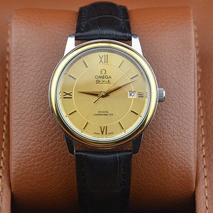 歐米茄金色全自動機械機芯真皮錶帶男士腕錶