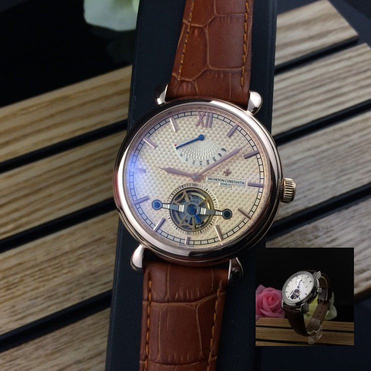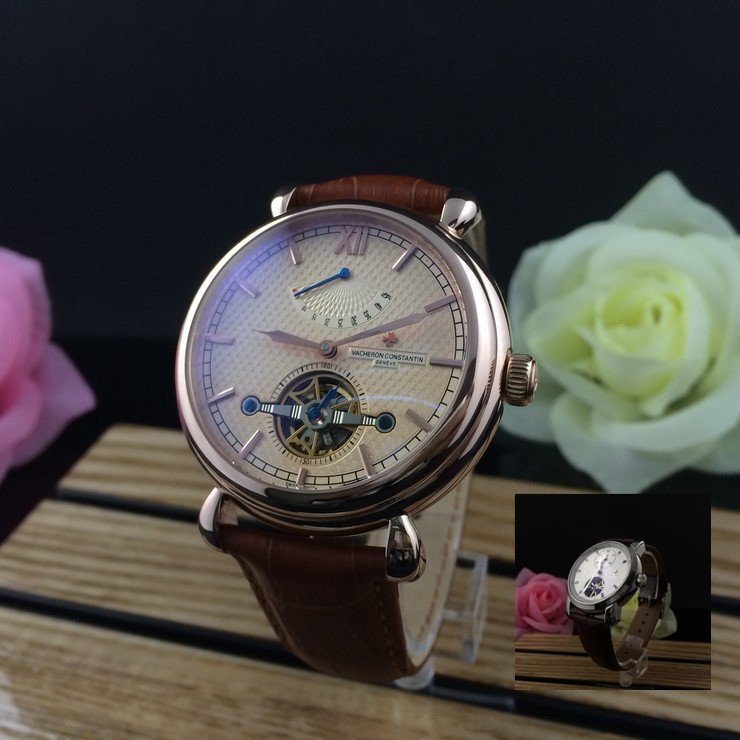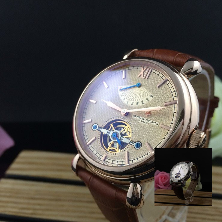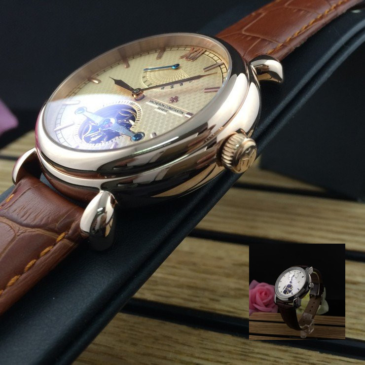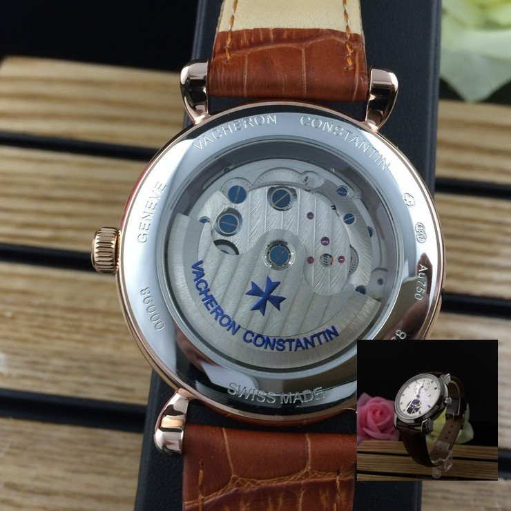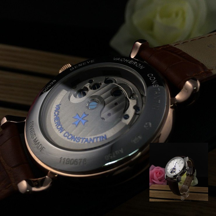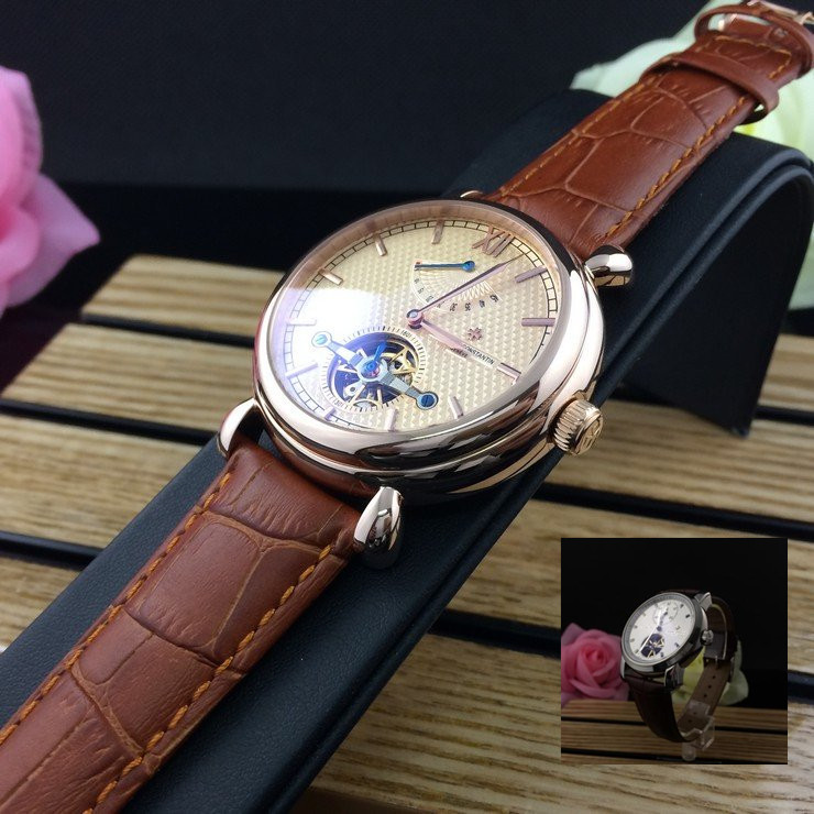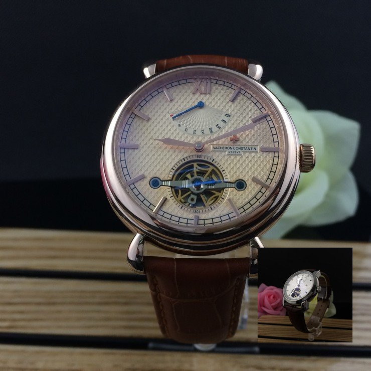 江詩丹頓 玫瑰金精鋼錶殼真皮錶帶陀飛輪男士機械手錶