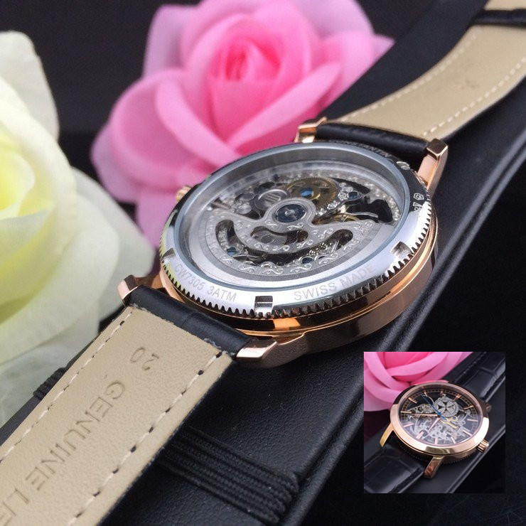 【材料】:進口瑞士玫瑰金錶殼 真牛皮錶帶,永不掉色、永不生銹,高精度藍寶石玻璃永不劃損