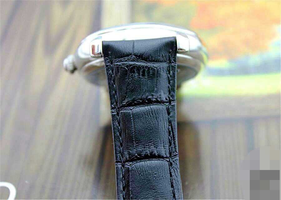 江詩丹頓藍色錶針,藍色條釘加羅馬刻度,全鋼錶殼,黑色皮手錶帶,江詩丹頓男士機械腕錶