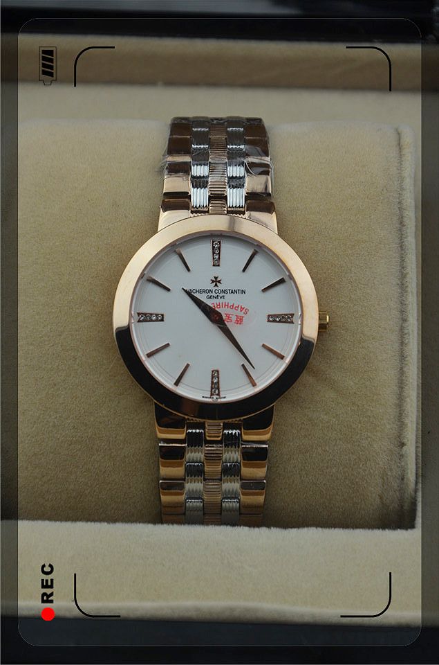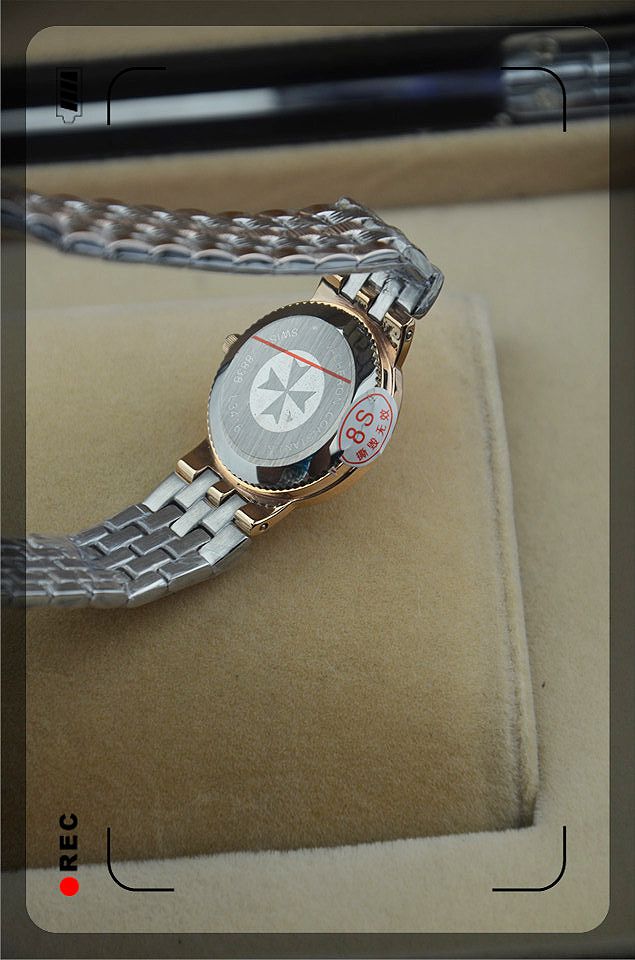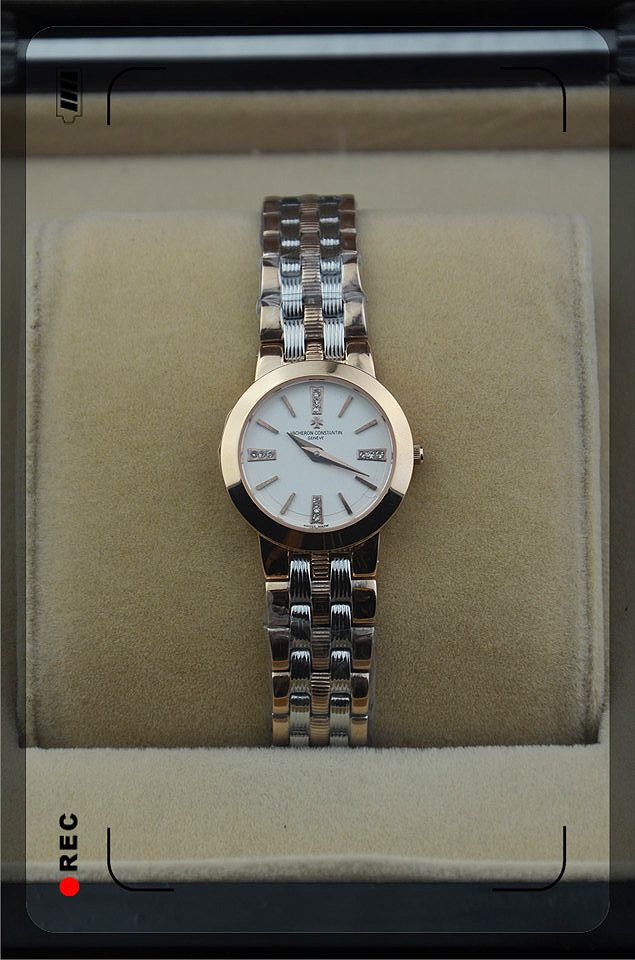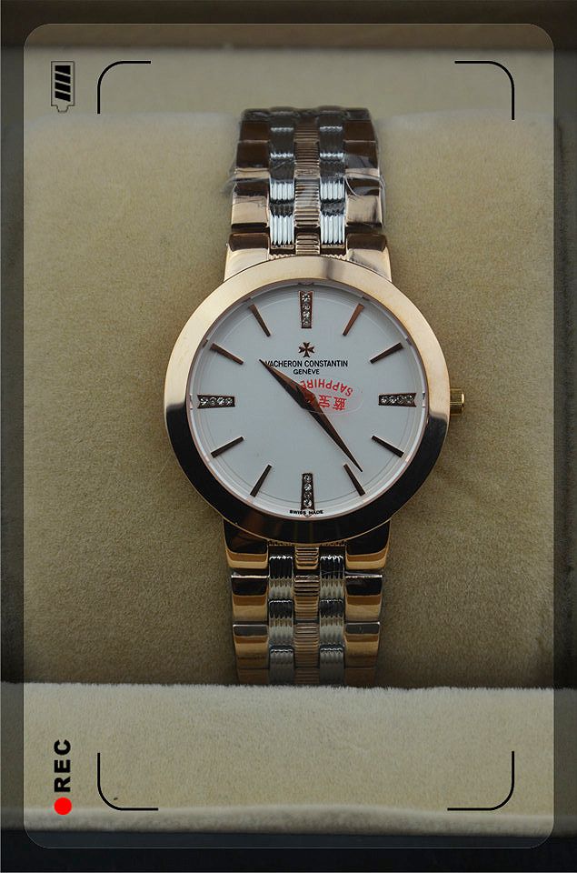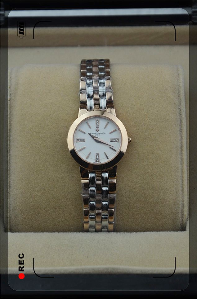 【品牌】:江詩丹頓 情侶款【機芯】:瑞士石英機芯 實心【材質】:高硬度耐磨藍寶石鏡面,全鋼錶殼,金色錶圈,同軸五銖精鋼錶帶,按扣,白色錶盤,金色錶針,金色條釘刻度【功能】:2針計時,防磁,防震【尺寸】:男:錶殼36mm,厚度6.6mm ,重量90g 女:錶殼25mm,厚度6.4mm,重量50g【標誌】:錶面、錶背、錶帶處有品牌標誌【防水】:生活防水【保修】:機芯壹年保修,機芯以外的其他手錶配件不在保修範圍,此為手錶行業保修慣例,如有其他延期保修服務,請聯系店主咨詢。【配件】:包裝盒,說明書,質保卡,吊牌,香港發票,手提袋