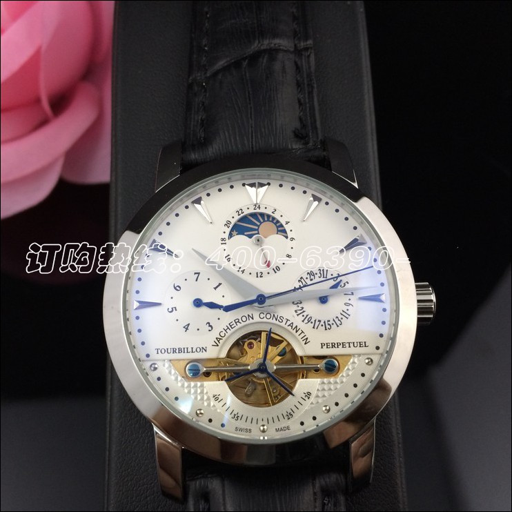 江詩丹頓 瑞士機芯精鋼真皮男款多功能男錶