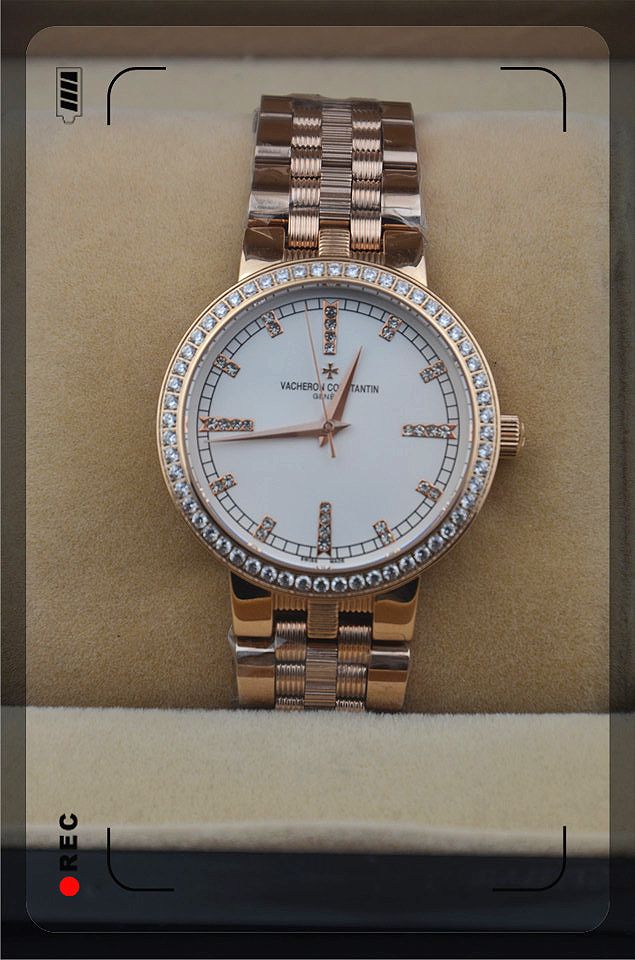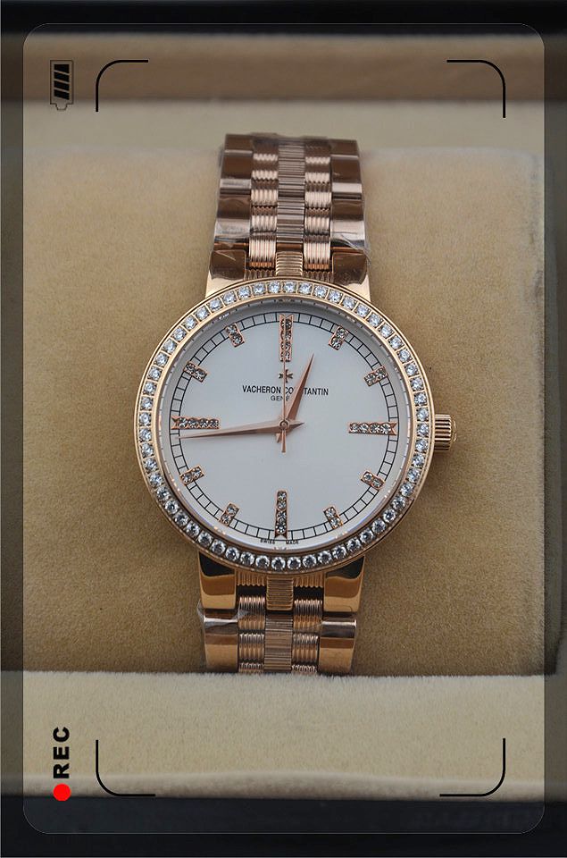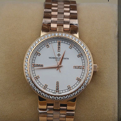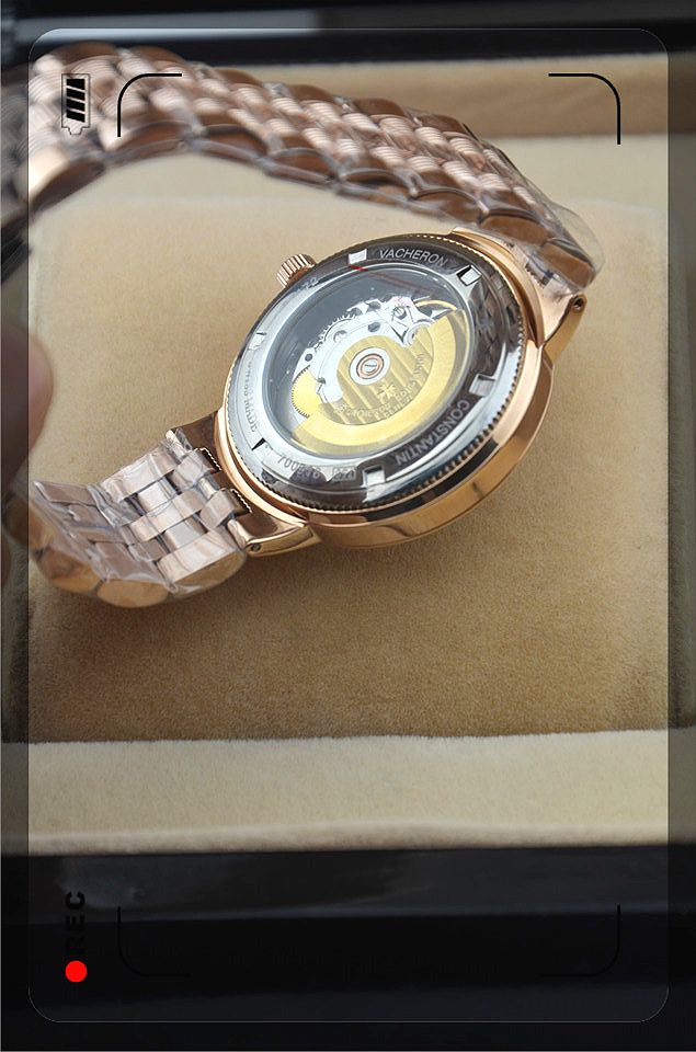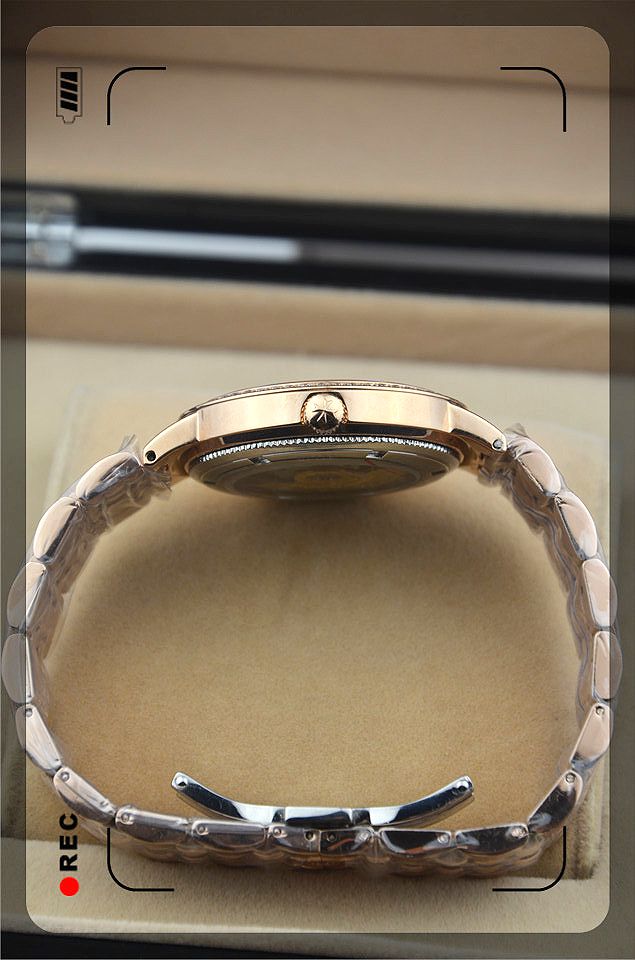 江詩丹頓鉆石玫瑰金三針瑞士機芯男士機械腕錶