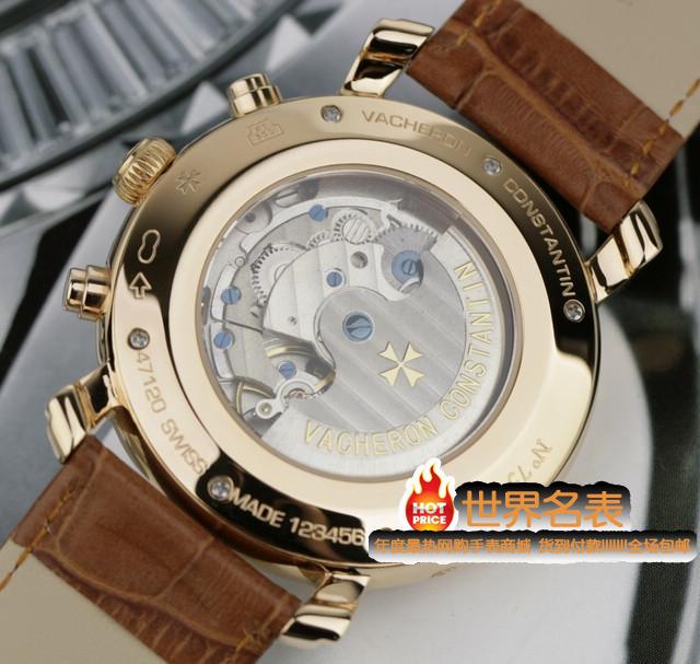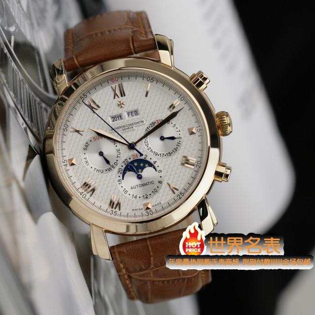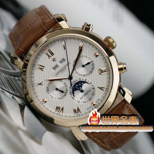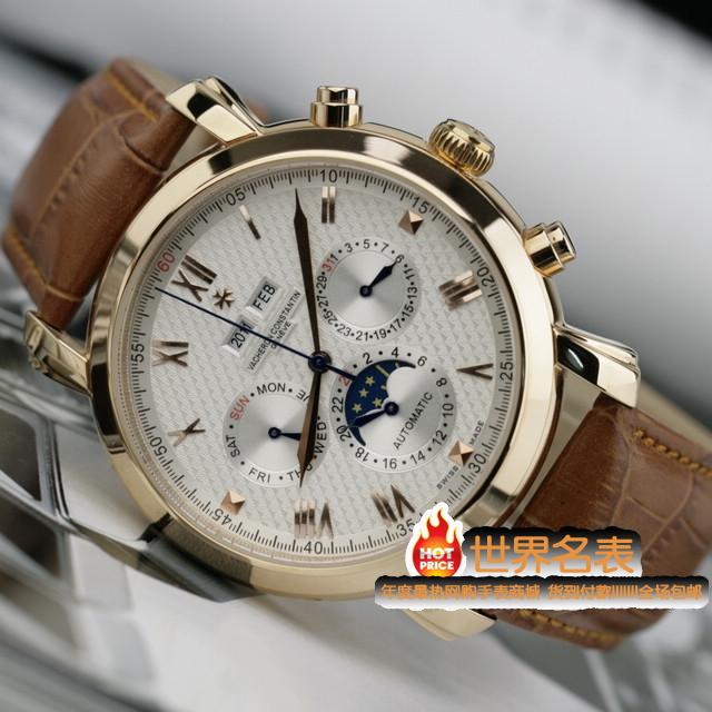 江詩丹頓 玫金6針3曆晝夜提示自動機械錶多功能時尚休閑男士手錶