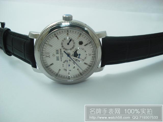 江詩丹頓雙日曆白色底真皮錶帶日本全自動進口機械機芯VC0823