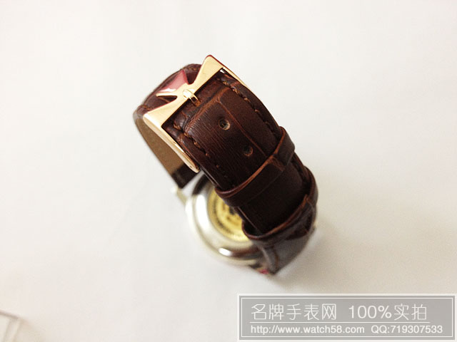 【材料】:18K玫瑰金錶殼,鉆石刻度,意大利小牛皮錶帶,高精度藍寶石玻璃永不劃損