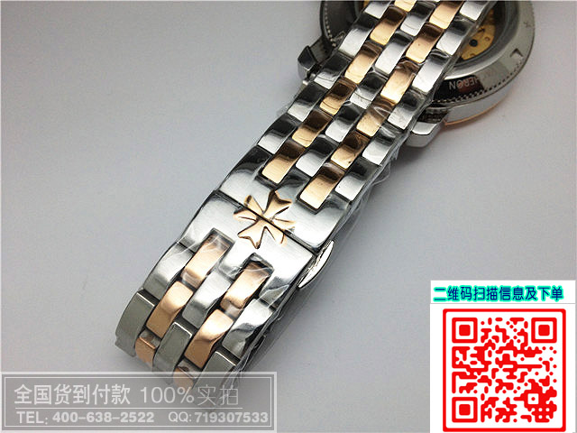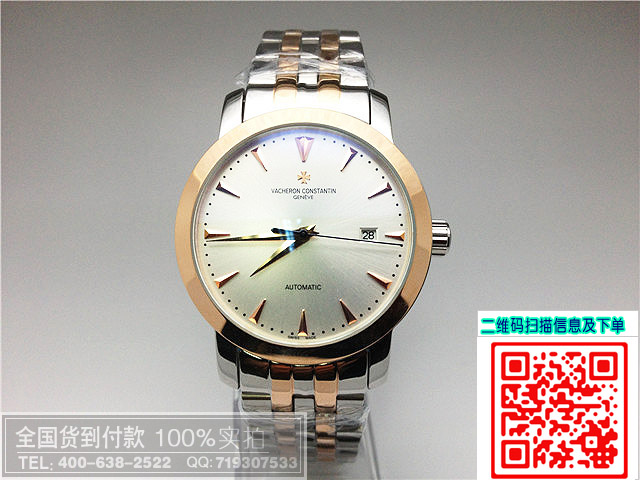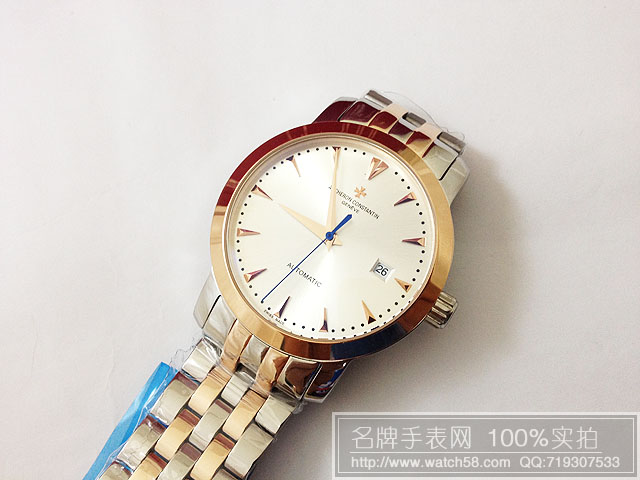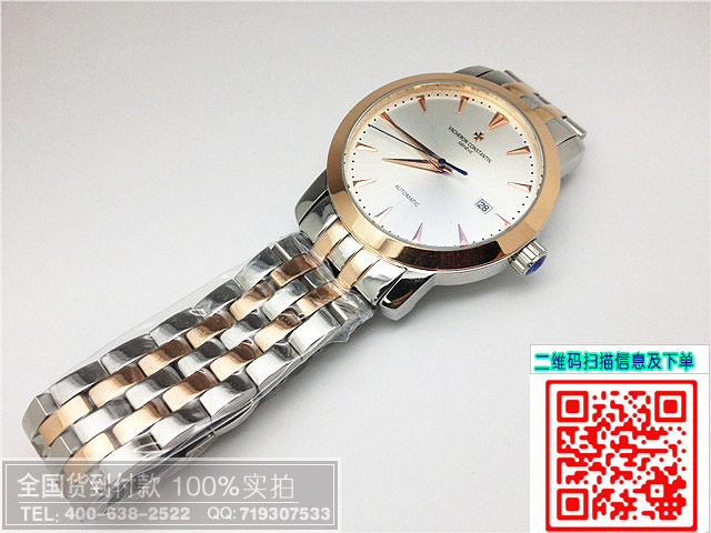 商品屬性 [品牌]江詩丹頓[款式]男款[機芯]進口全自動機芯[錶盤]條釘刻度[鏡面]高硬度水晶玻璃[錶殼]全精鋼錶殼[錶帶]全精鋼錶帶[防水]生活防水[尺寸]寬度:3.9CM 厚度:1.1CMc 重量:160克[功能]日歷[配件]包裝盒,說明書,質保卡,吊牌,香港發票