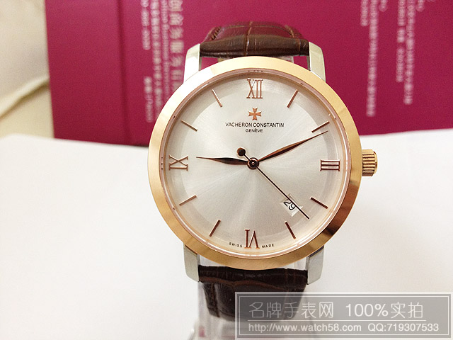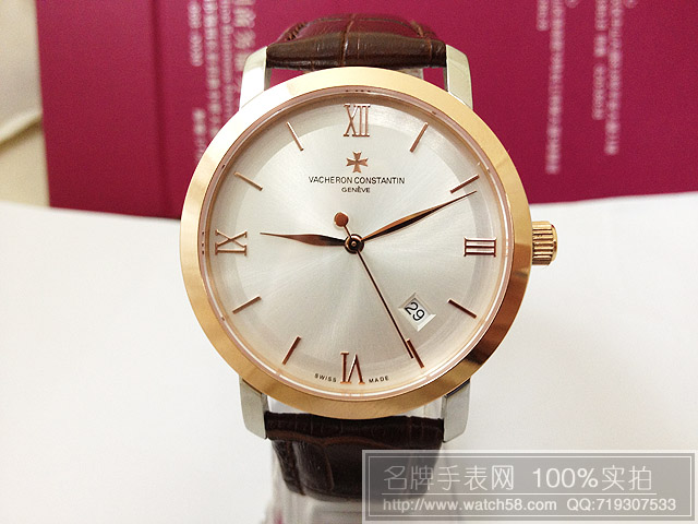 商品屬性 [品牌]江詩丹頓[款式]男款[機芯]進口石英機芯[錶盤]條釘羅馬刻度[鏡面]藍寶石鏡面玻璃[錶殼]全精鋼錶殼[錶帶]真皮錶帶[防水]生活防水[尺寸]男款直徑:3.8CM 厚度:0.8CM 重量:40K