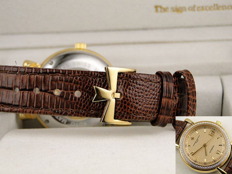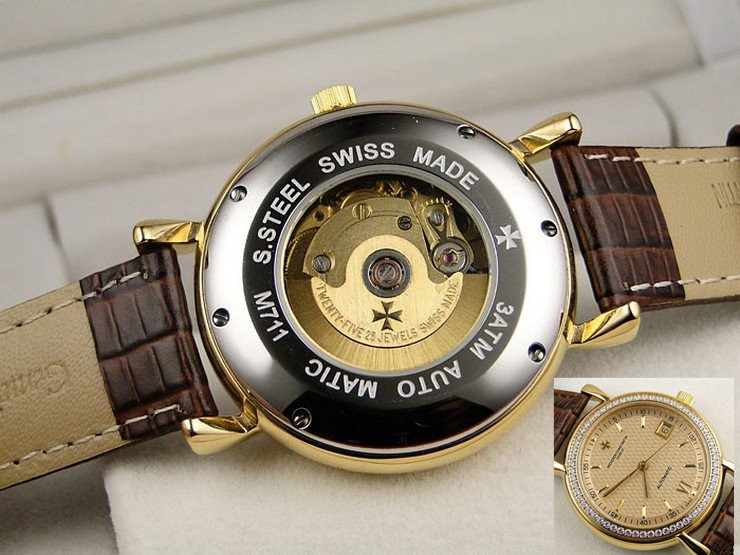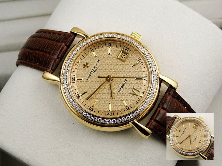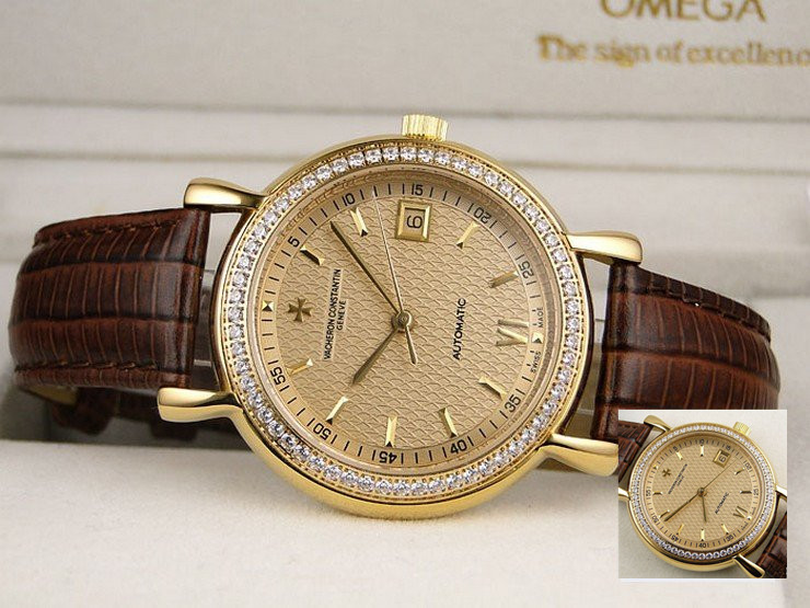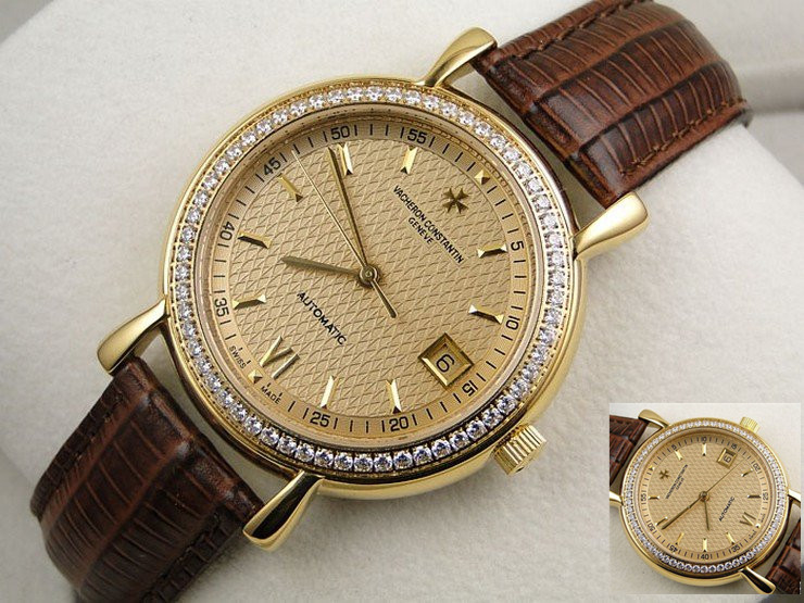 高檔瑞士機芯江詩丹頓Vacheron Constantin男錶 18K金金面鑲鉆自動機械