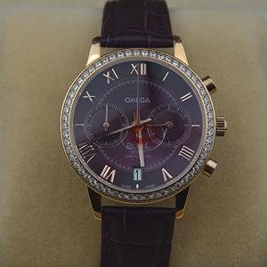 歐米茄瑞士石英雙日曆OM096550鑲鑽女士腕錶(錶盤多色可選擇)