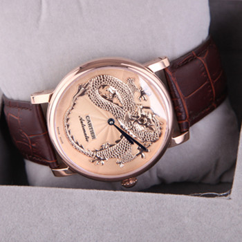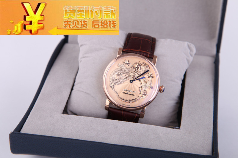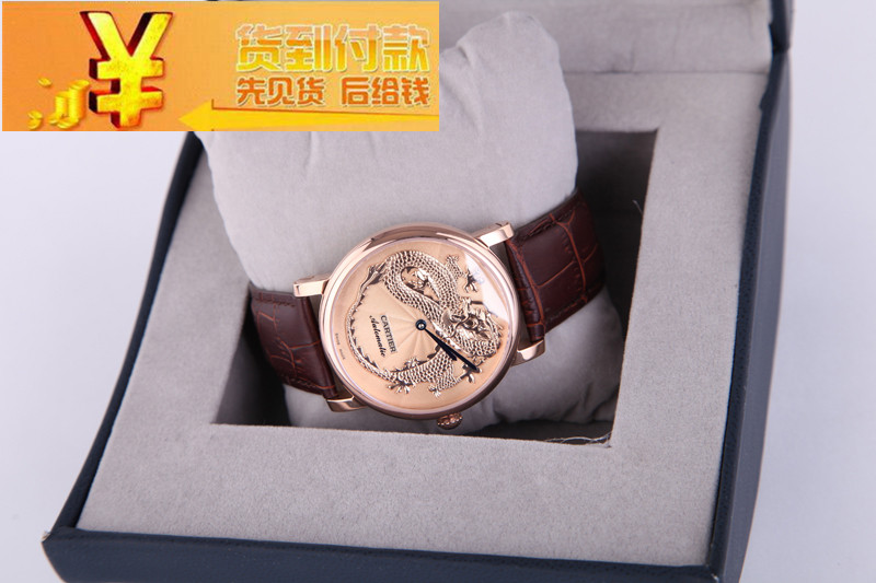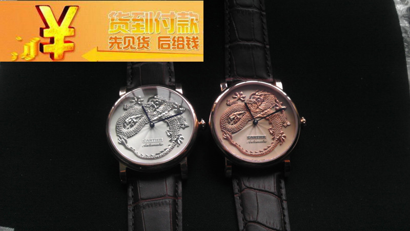 精品個性卡地亞cartier 間金殼銀殼龍浮雕機械男錶