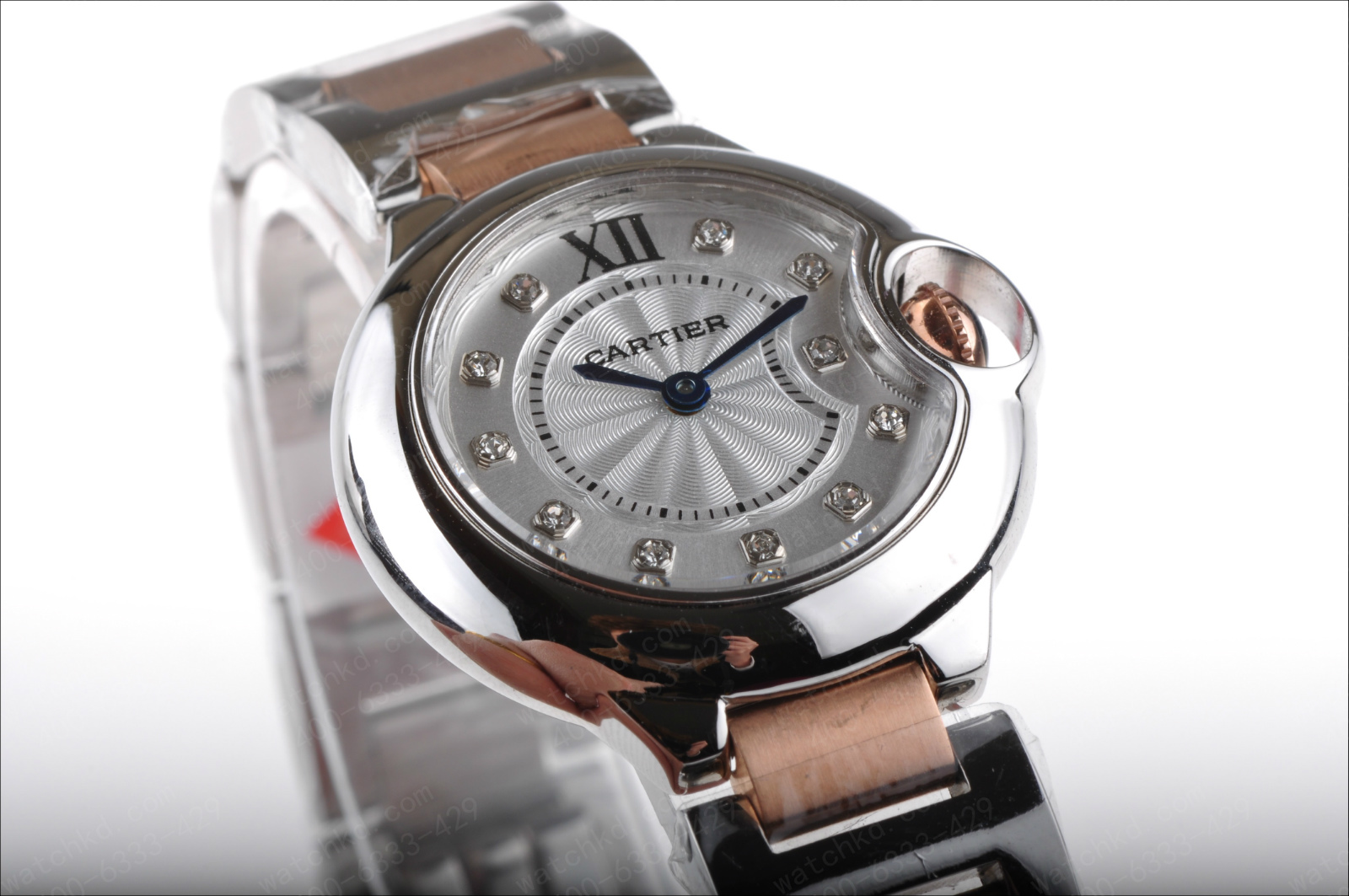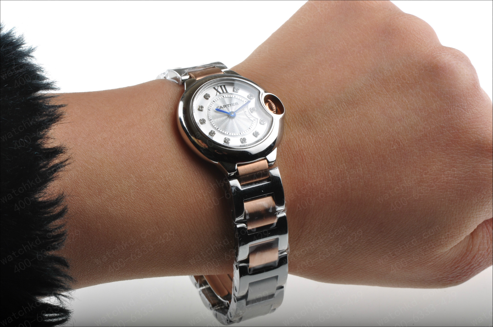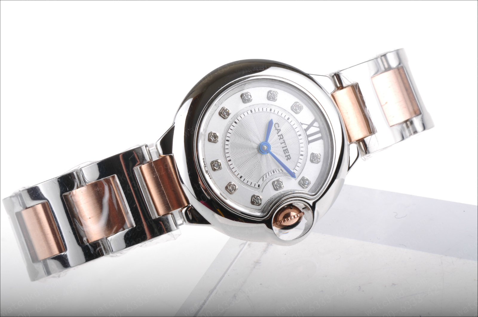 品牌:卡地亞系列藍氣球系列款式:女錶機芯:石英錶錶殼:不銹鋼尺寸:28.5毫米錶扣:折疊扣錶盤:銀色錶帶:間金鏈帶錶形:圓形錶面:藍寶石水晶玻璃錶冠:旋入式包裝:精美包裝盒、說明書、保修卡等防水:生活防水