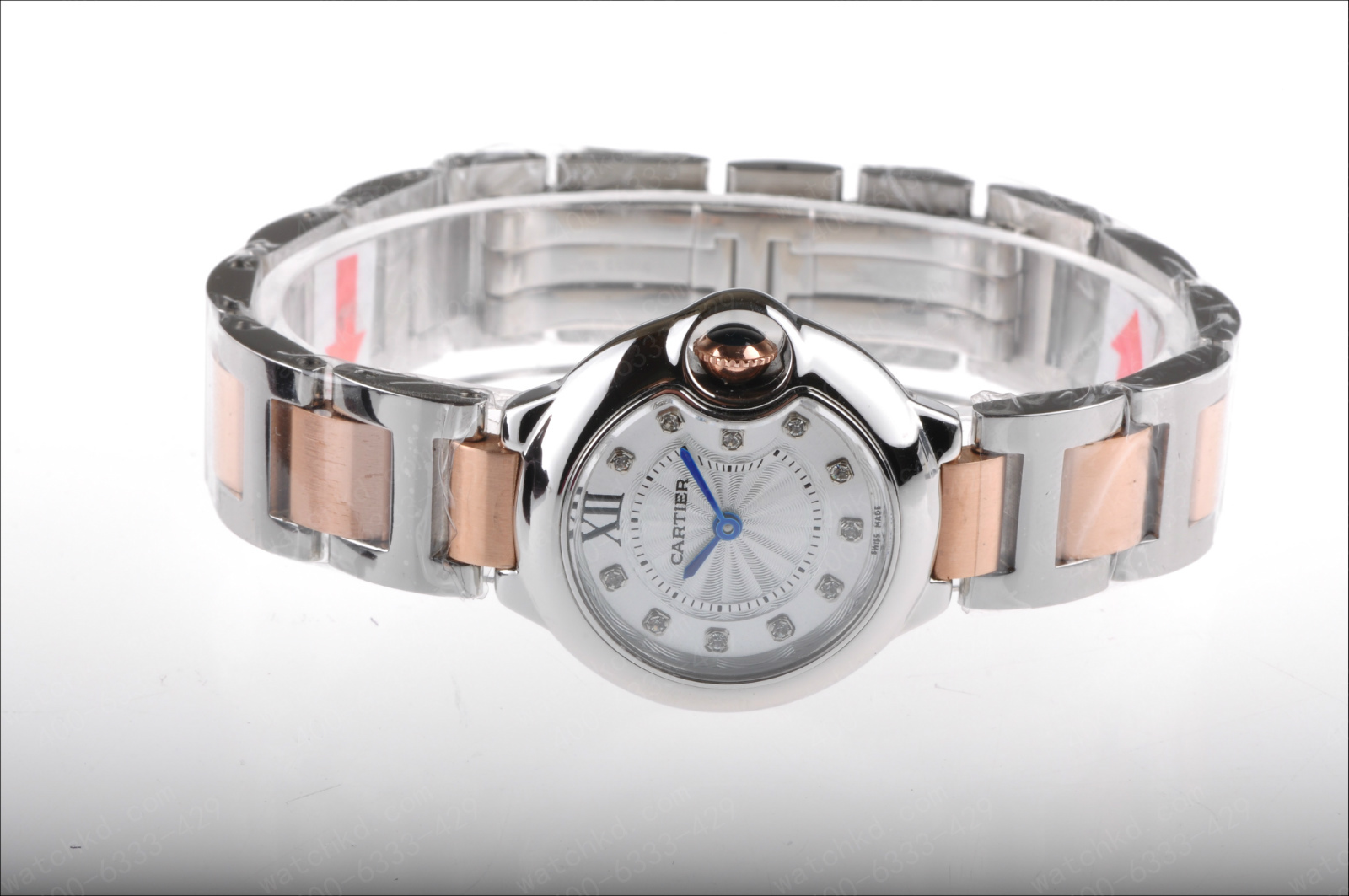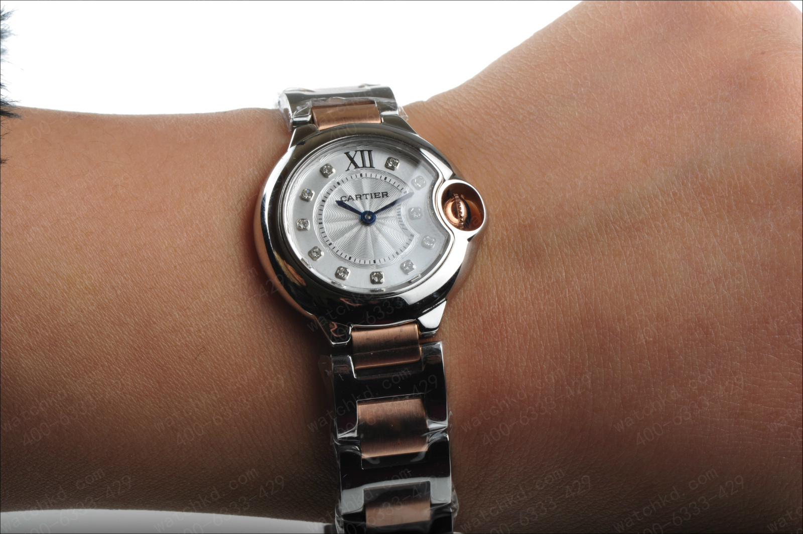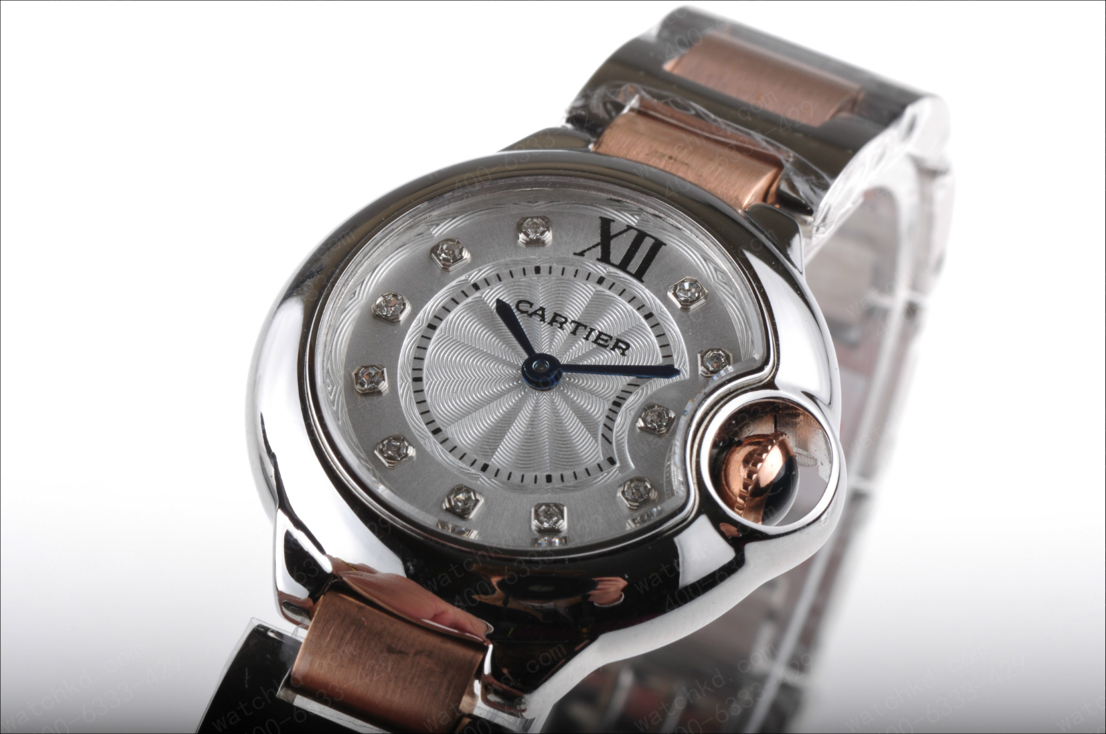 品牌:卡地亞系列藍氣球系列款式:女錶機芯:石英錶錶殼:不銹鋼尺寸:28.5毫米錶扣:折疊扣錶盤:銀色錶帶:間金鏈帶錶形:圓形錶面:藍寶石水晶玻璃錶冠:旋入式包裝:精美包裝盒、說明書、保修卡等防水:生活防水