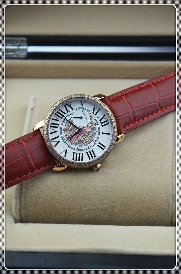 品牌: 卡地亞機芯:石英女士腕錶尺寸:寬36厚9.3重60K錶帶:皮帶包裝:原包裝,說明書,發票,保修卡