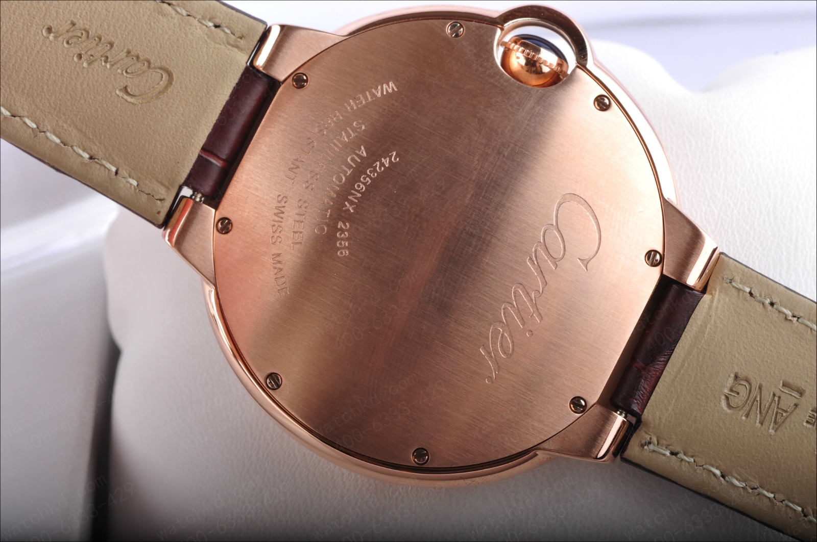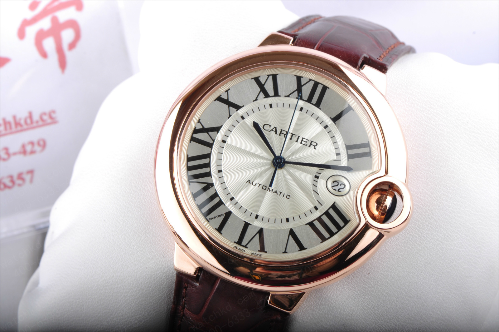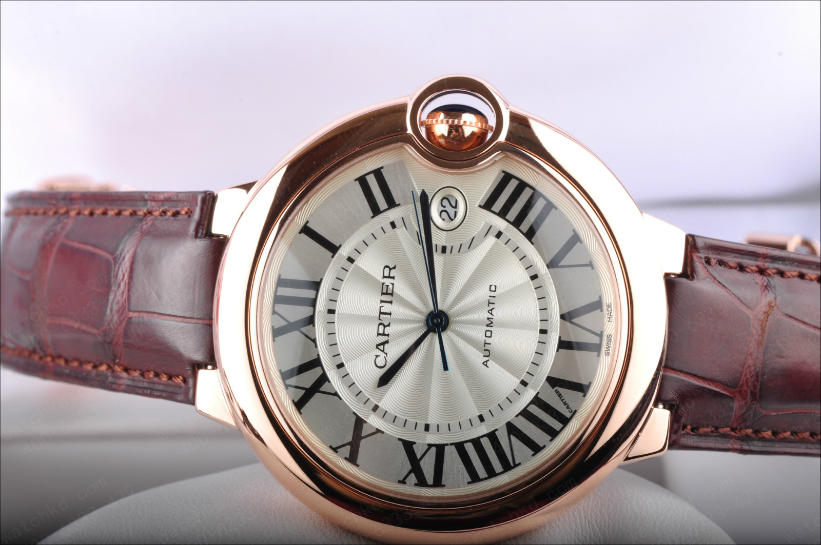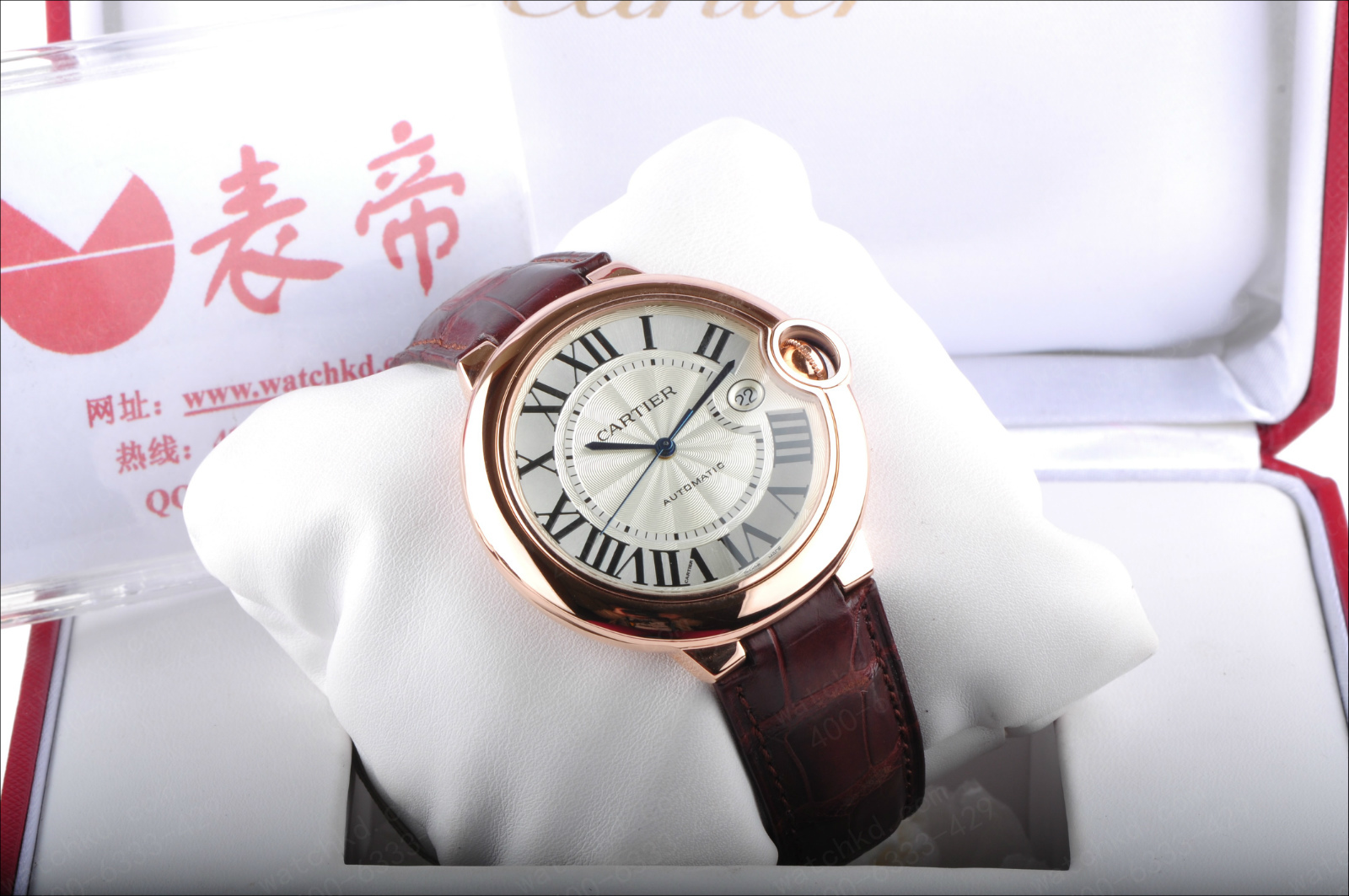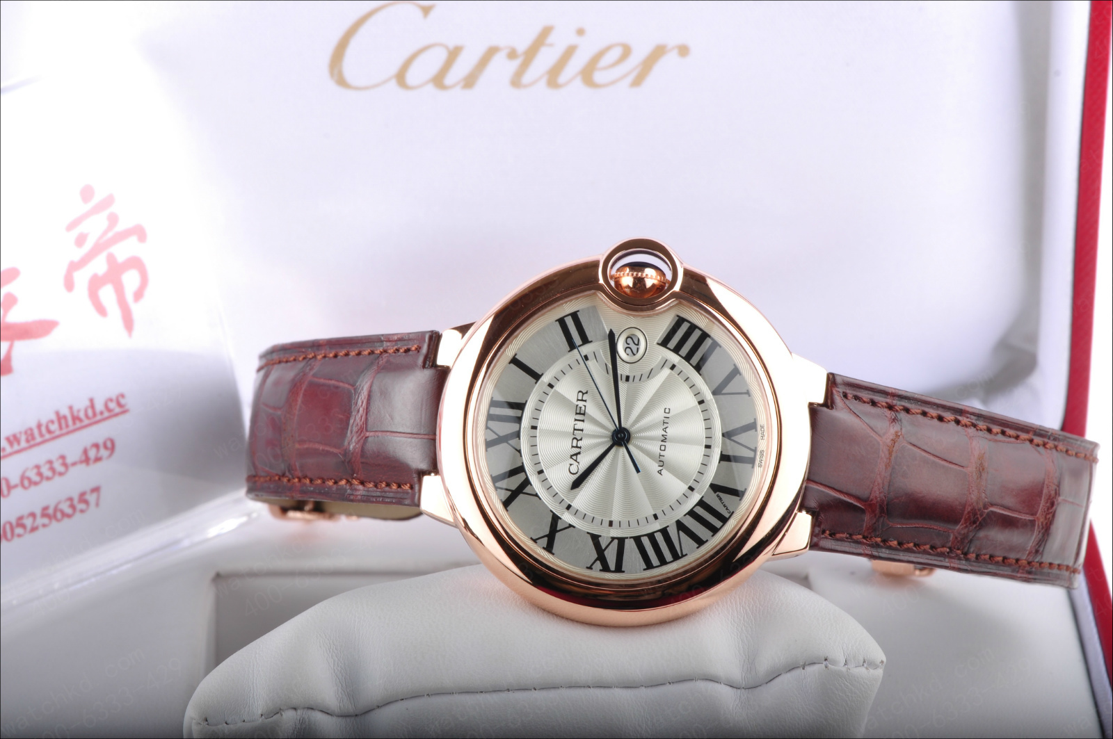 錶徑:42.1毫米錶殼厚度:13毫米錶殼材質:18k玫瑰金錶盤顏色:銀白錶盤形狀:圓形錶盤材質:鍍銀錶鏡材質:藍寶石水晶玻璃錶冠材質:18k玫瑰金溝槽錶冠鑲嵌凸圓形藍寶石錶帶顏色:深棕色錶帶材質:鱷魚皮錶扣類型:折疊扣錶扣材質:18k玫瑰金防水深度:生活防水