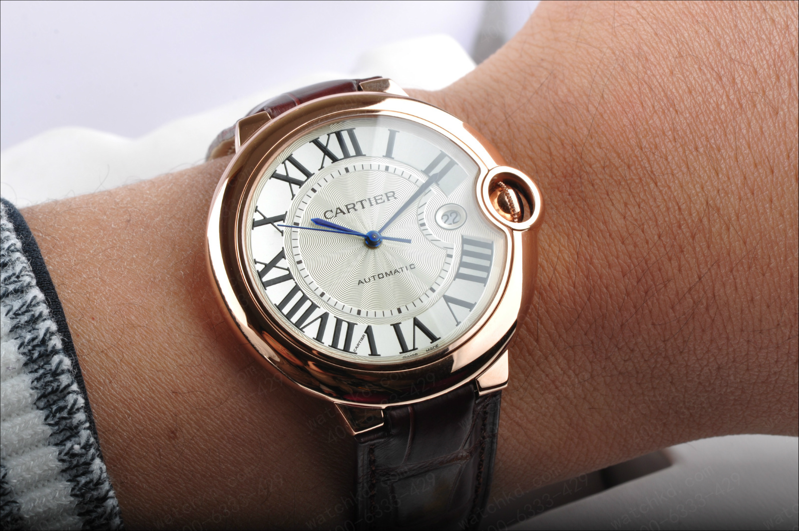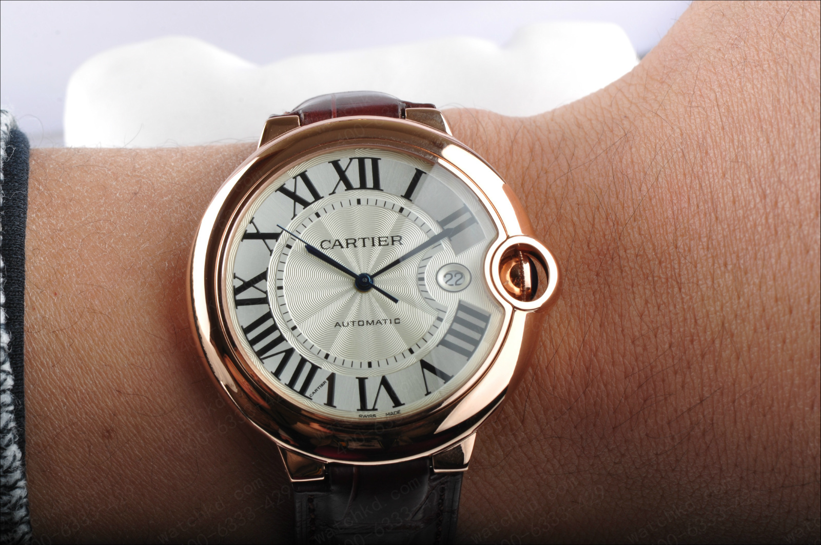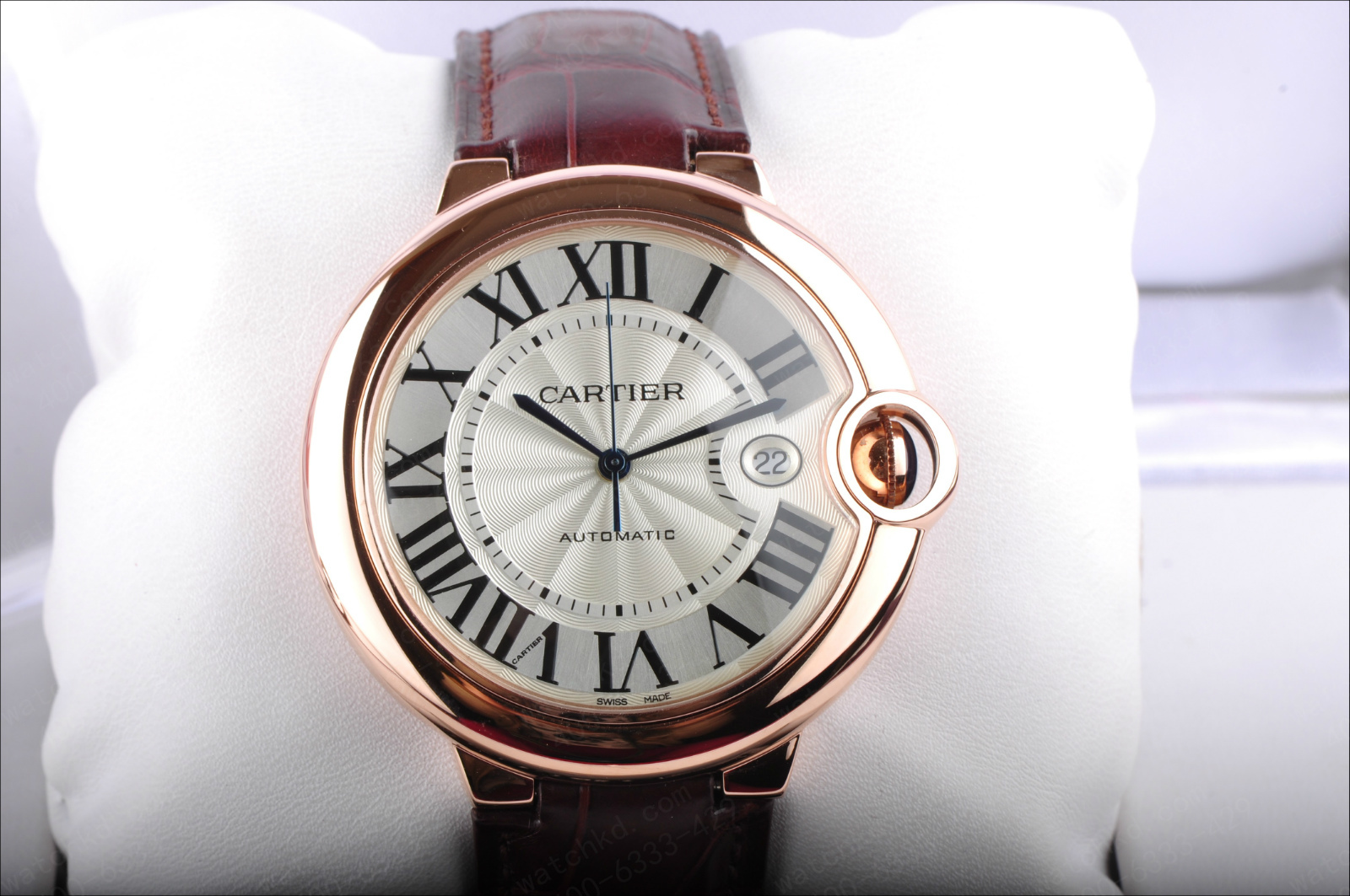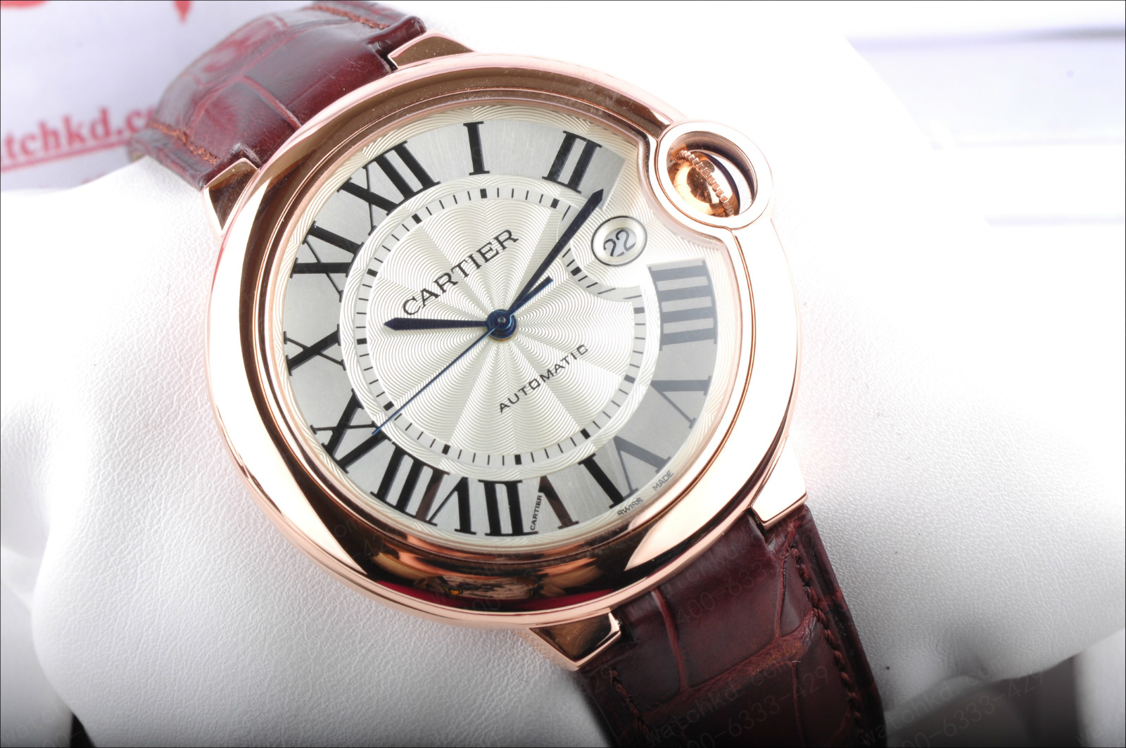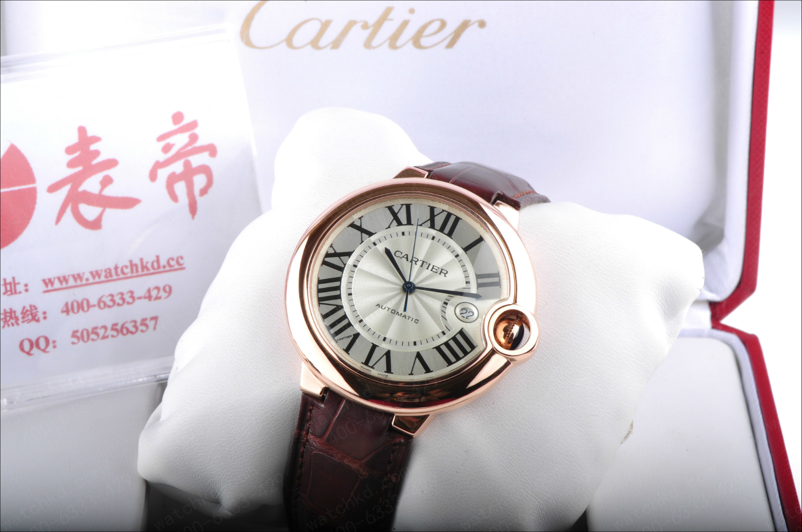 錶徑:42.1毫米錶殼厚度:13毫米錶殼材質:18k玫瑰金錶盤顏色:銀白錶盤形狀:圓形錶盤材質:鍍銀錶鏡材質:藍寶石水晶玻璃錶冠材質:18k玫瑰金溝槽錶冠鑲嵌凸圓形藍寶石錶帶顏色:深棕色錶帶材質:鱷魚皮錶扣類型:折疊扣錶扣材質:18k玫瑰金防水深度:生活防水