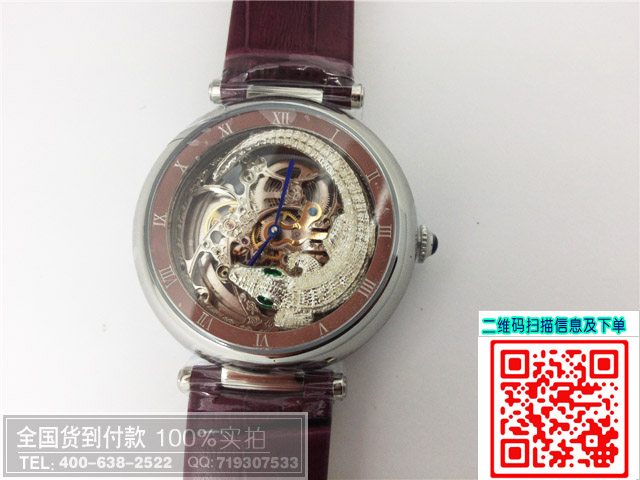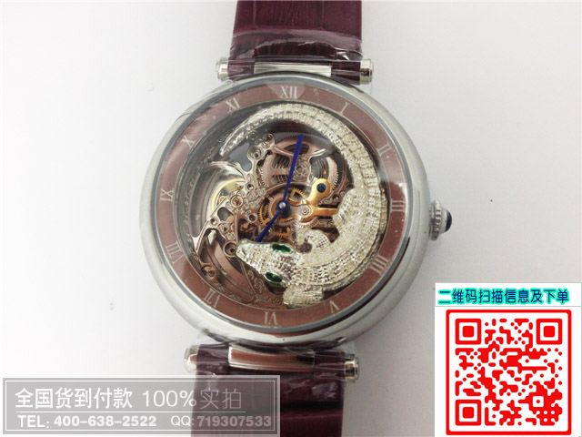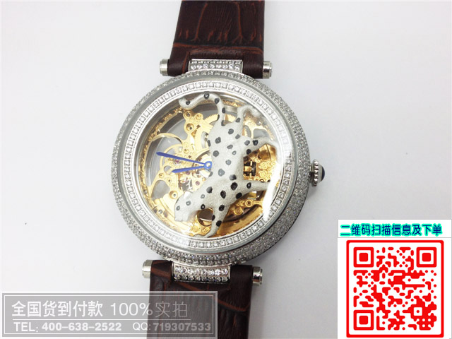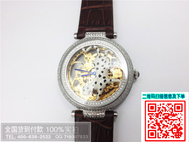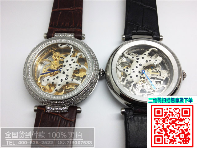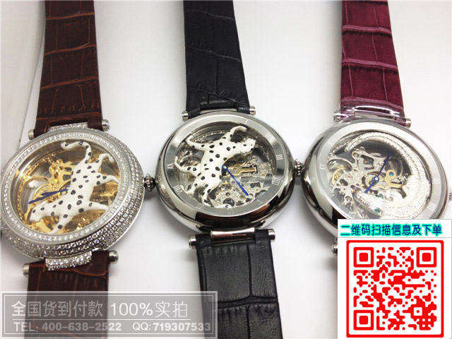 卡地亞鏤空透底機械動物圖案男士女士手錶