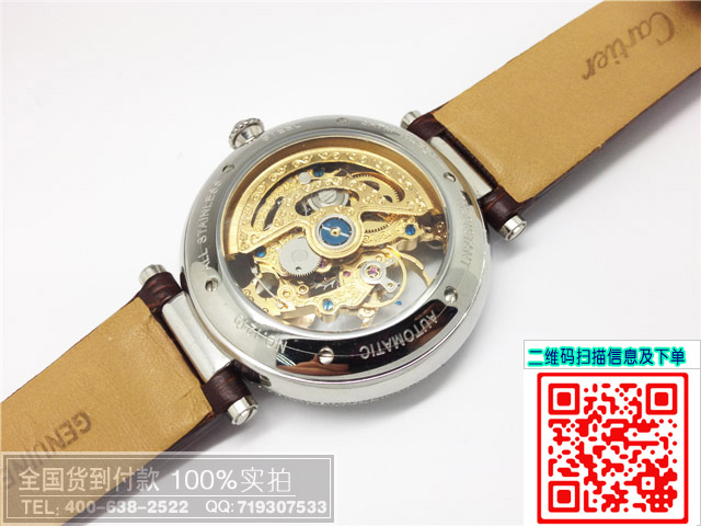 品牌: (卡地亞) 機芯:進口自動機械機芯 背透 或者瑞士石英材質:高硬度礦物玻璃鏡面,全鋼錶殼,黑色真皮錶帶,黑面咖啡色皮帶如圖功能:2針計時,羅馬刻度尺寸:石英:錶寬:4.2CM 厚度:1.1CM 重量:70克 機械:錶寬:4.2CM 厚度:1.4CM 重量:80標誌:錶面、錶背、錶帶、錶扣處有品牌標誌防水:生活防水(生活防水即:防濺潑、雨水等壹類遇水時間短,壹過性的遇水情況,遇水請及時甩幹或抹幹)保修:機芯壹年保修,機芯以外的其他手錶配件不在保修範圍,此為手錶行業保修慣例,如有其他延期保修服務,請聯系店主咨詢。包裝:簡單包裝,需要禮盒包裝請至包裝配件區選購