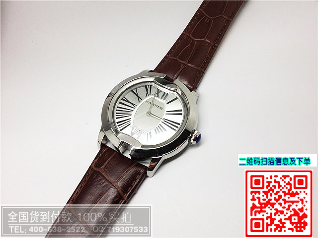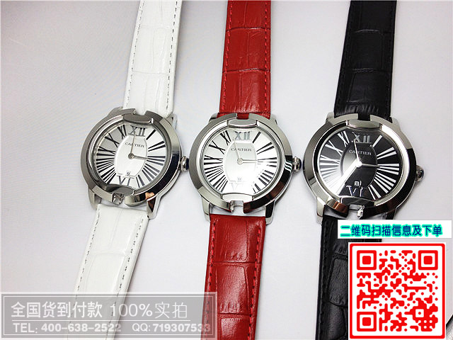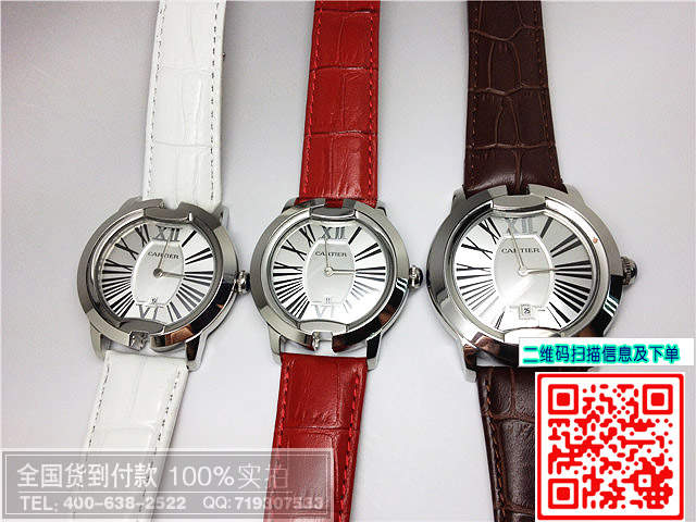 品牌:卡地亞 機芯:石英機芯材質:高硬度耐磨鏡面,全鋼錶殼錶扣,高檔進口真皮壓紋錶帶功能:計時,3針羅馬刻度,精確計時尺寸:中號:錶寬:3.9CM 厚度:1.1CM 重量:60克 大號:錶寬:4.5CM 厚度:1.1CM 重量:80克標誌:錶面、錶背、錶帶出有卡地亞標誌防水:生活防水保修:免費保修1年