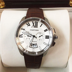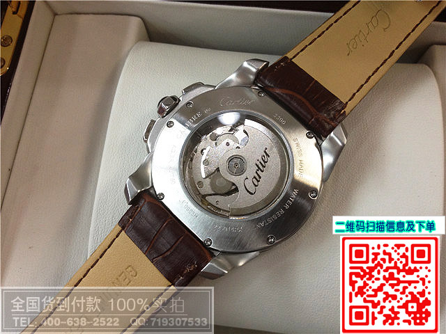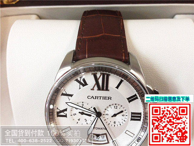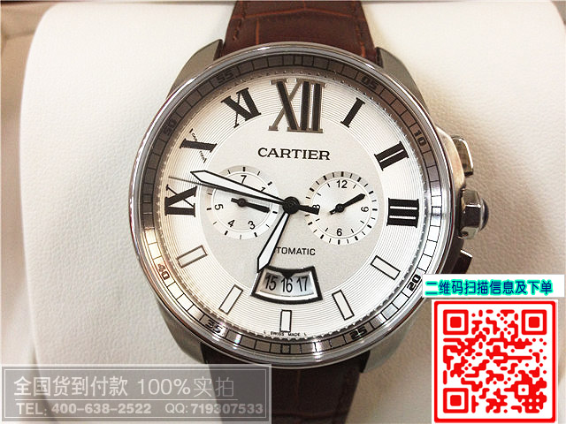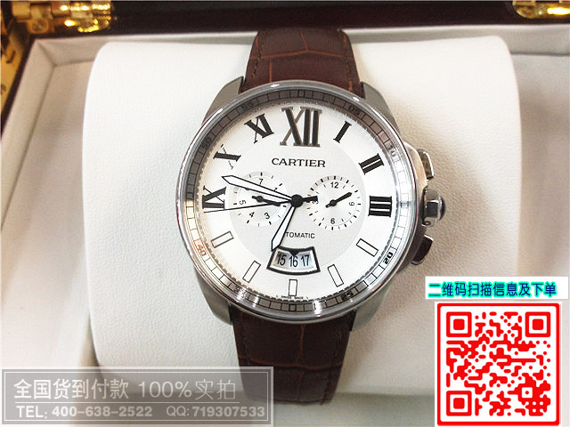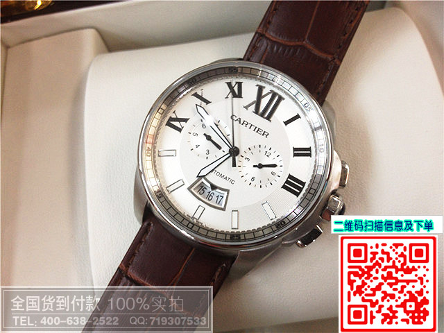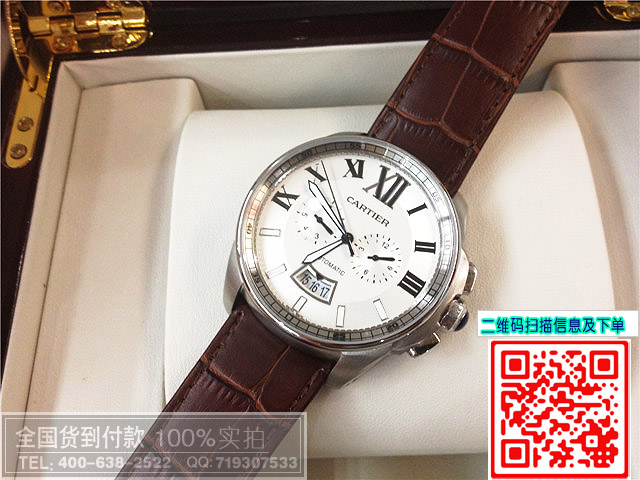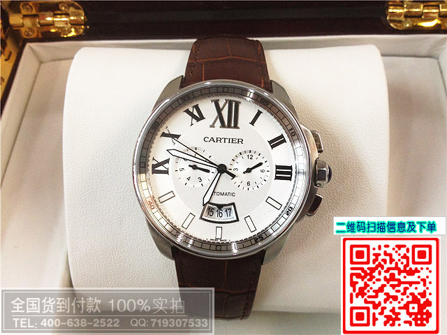 品牌:卡地亞超A機芯:日本進口全自動機芯 背透材質:高硬度礦物水晶玻璃鏡面,全鋼錶殼,真皮錶帶,白色錶盤,鍍藍膜功能:5針計時,羅馬刻度,星期,月份,日歷尺寸:錶殼42mm ,,厚度10mm 標誌:錶面、錶背、錶帶、錶扣處有品牌標誌防水:生活防水(生活防水即:防濺潑、雨水等壹類遇水時間短,壹過性的遇水情況,遇水請及時甩幹或抹幹)保修:機芯壹年保修,機芯以外的其他手錶配件不在保修範圍,此為手錶行業保修慣例,如有其他延期保修服務,請聯系店主咨詢。包裝:簡單包裝,需要禮盒包裝請至包裝配件區選購