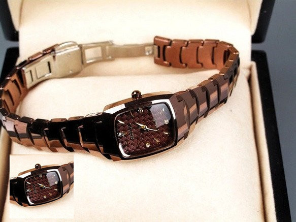 機芯:瑞士原裝機芯材質:藍寶石鏡面、鎢鋼錶殼錶帶:鎢鋼尺寸:18*15mm(錶殼直徑) 10mm(錶帶寬) 7mm(錶厚)
