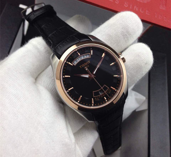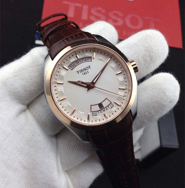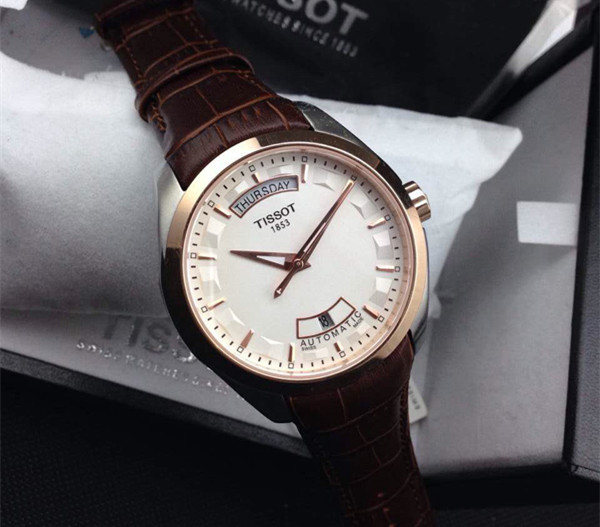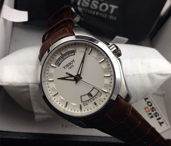 新款專櫃同款天梭Tissot雙日曆皮帶款時尚進口全自動機械男士腕錶 有多款可選