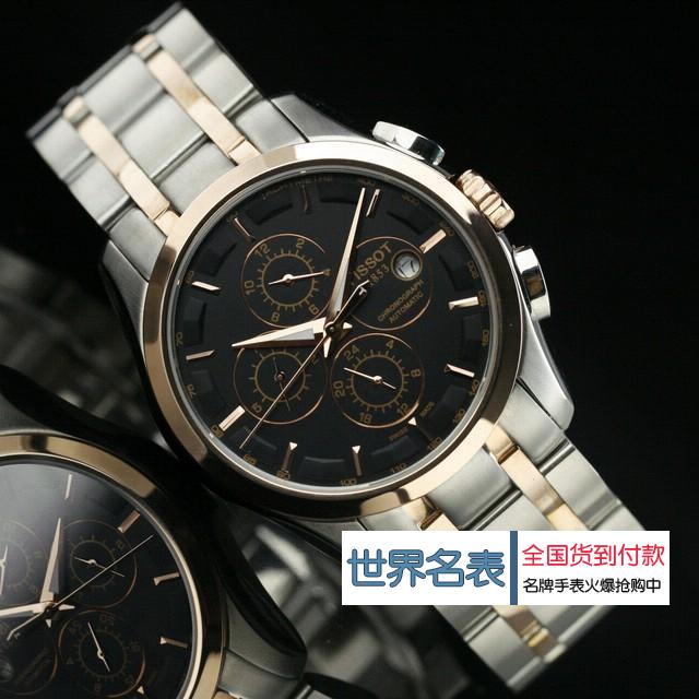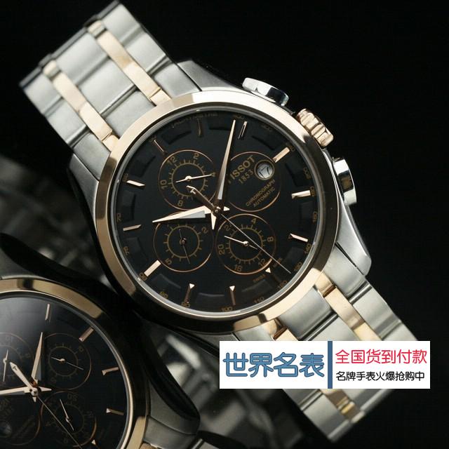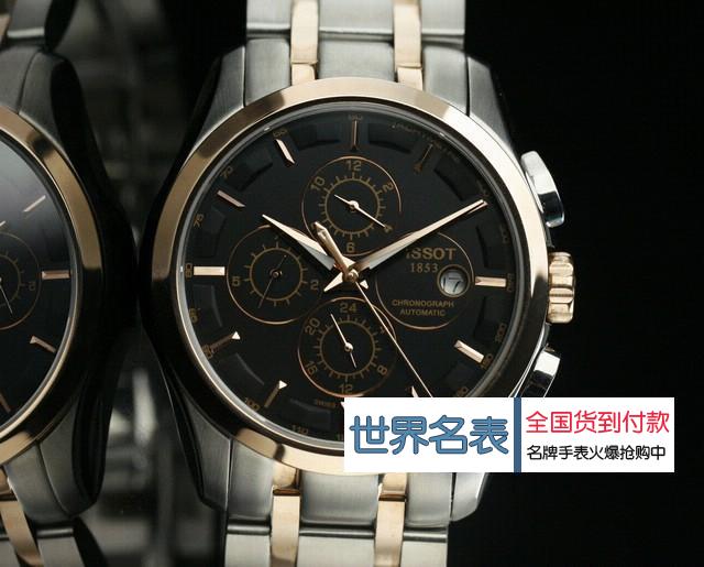 天梭/TISSOT/酷圖/全鋼間玫金/6針/日曆/自動機械錶/男士手錶(黑面)