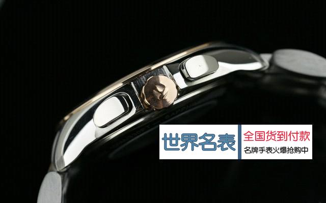 材質:高硬度耐磨藍寶石鏡面,精鋼錶殼,玫金色錶圈,五珠全散珠精鋼間玫金錶帶,黑色錶盤