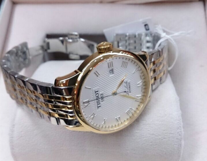 TISSOT天梭力洛克系列機械男錶 商務休閑 間金鋼帶白面款T41.5.413.73