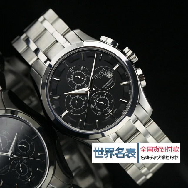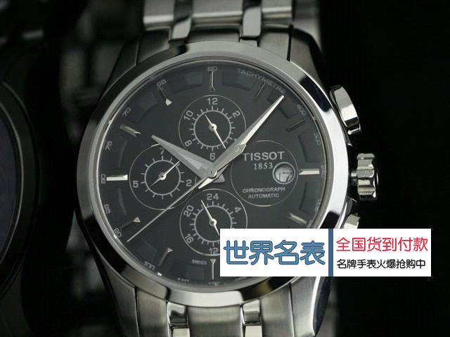 品牌:(TISSOT) 酷圖系列 機芯:日本進口全自動機械機芯,背透 材質:高硬度耐磨藍寶石鏡面,精鋼錶殼,五珠全散珠精鋼錶帶,黑色錶盤 功能:6針計時,日歷窗口顯示,小盤功能:6點位(24小時),9點位(星期),12點位(月份) 尺寸:錶殼40mm ,周長230mm ,厚度10mm ,錶帶寬度22-22mm,重量170g 標誌:錶面、錶背、錶扣處有品牌logo標誌 防水:生活防水