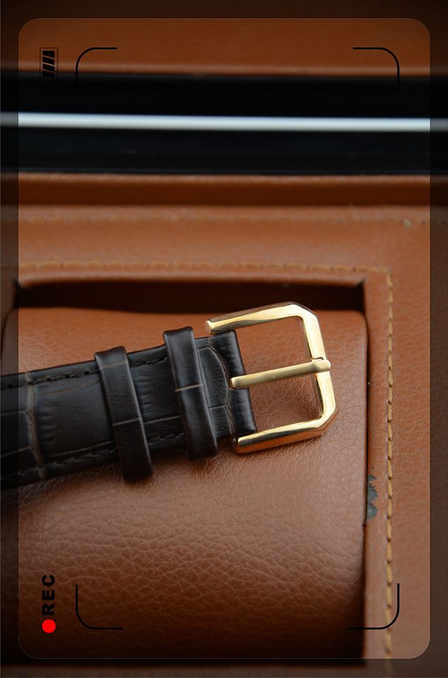 【材質】:高硬度耐磨藍寶石鏡面 全鋼錶殼 真皮錶帶