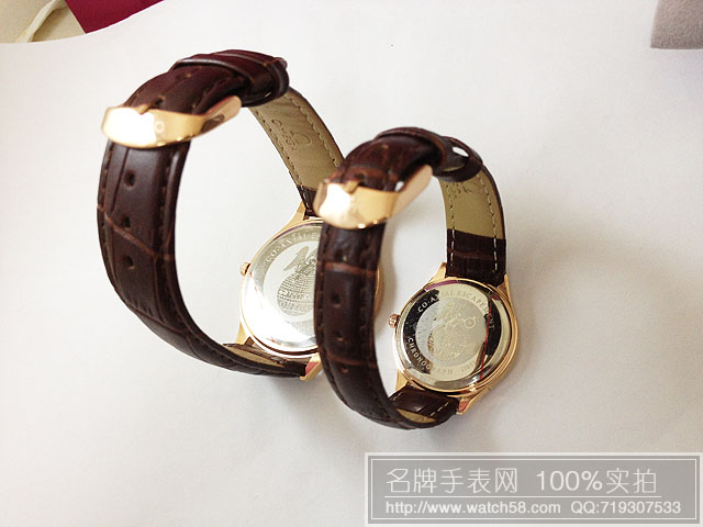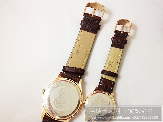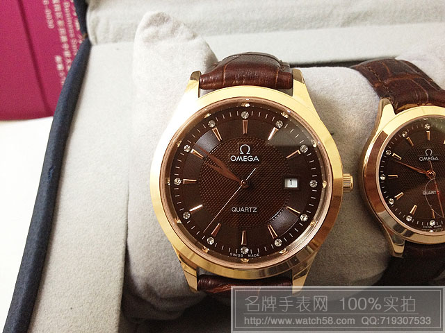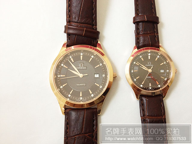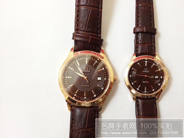 咖啡面歐米茄情侶手錶,石英機芯,真皮錶帶